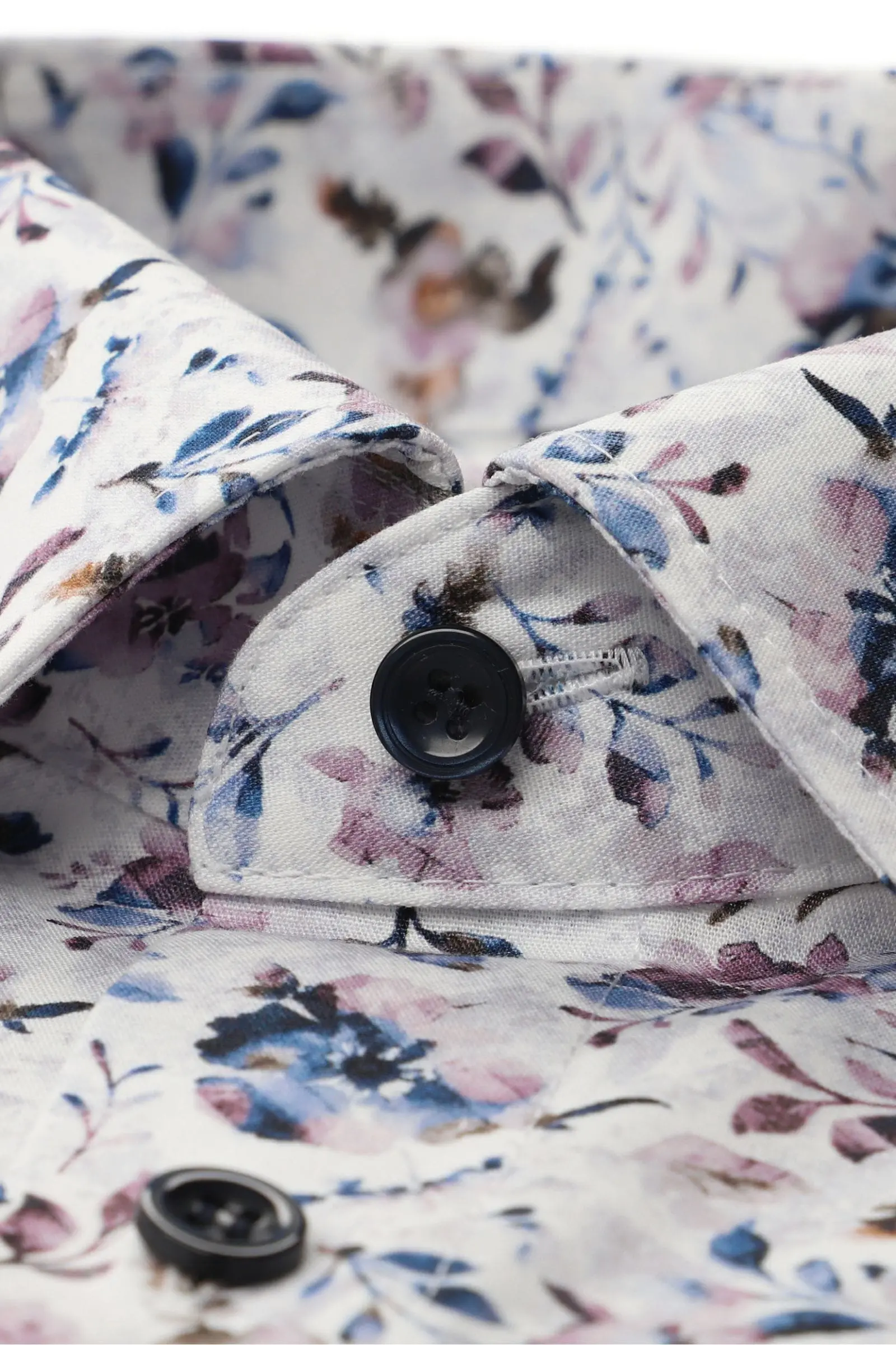 Marvelis overhemd met lange mouw zonder borstzakje in een blauw, wit en roze bloem design. Overhemd in model comfort fit is gemaakt van 100% katoen strijkvrij.