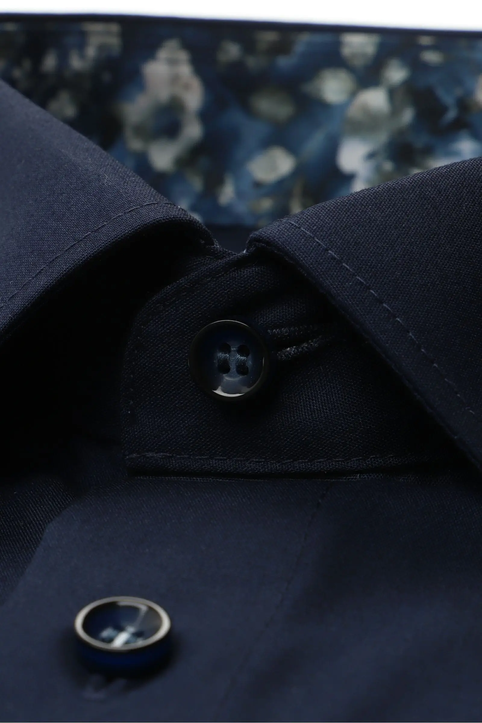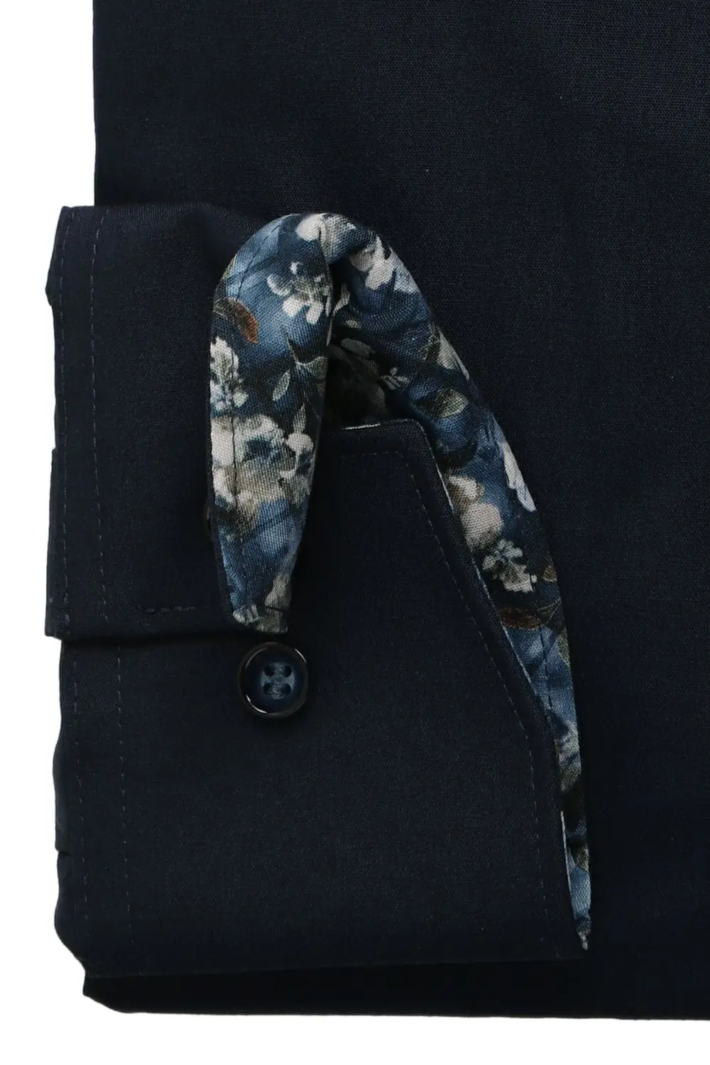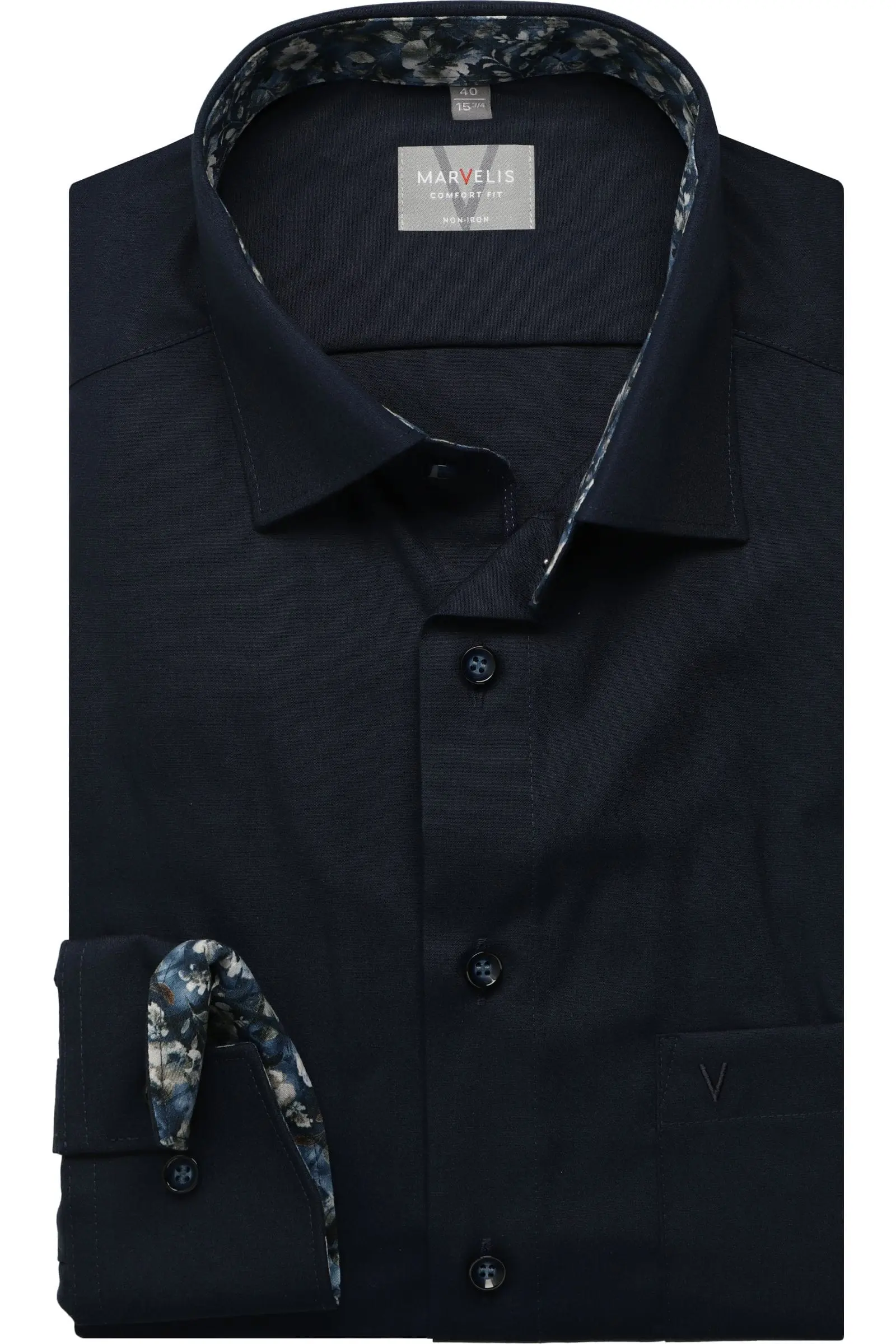 Marvelis overhemd lange mouw met borstzakje in donkerblauw design. Overhemd met in de kraag en manchetten een contrasterend stofje. Overhemd in model comfort fit is gemaakt van 100% katoen strijkvrij.