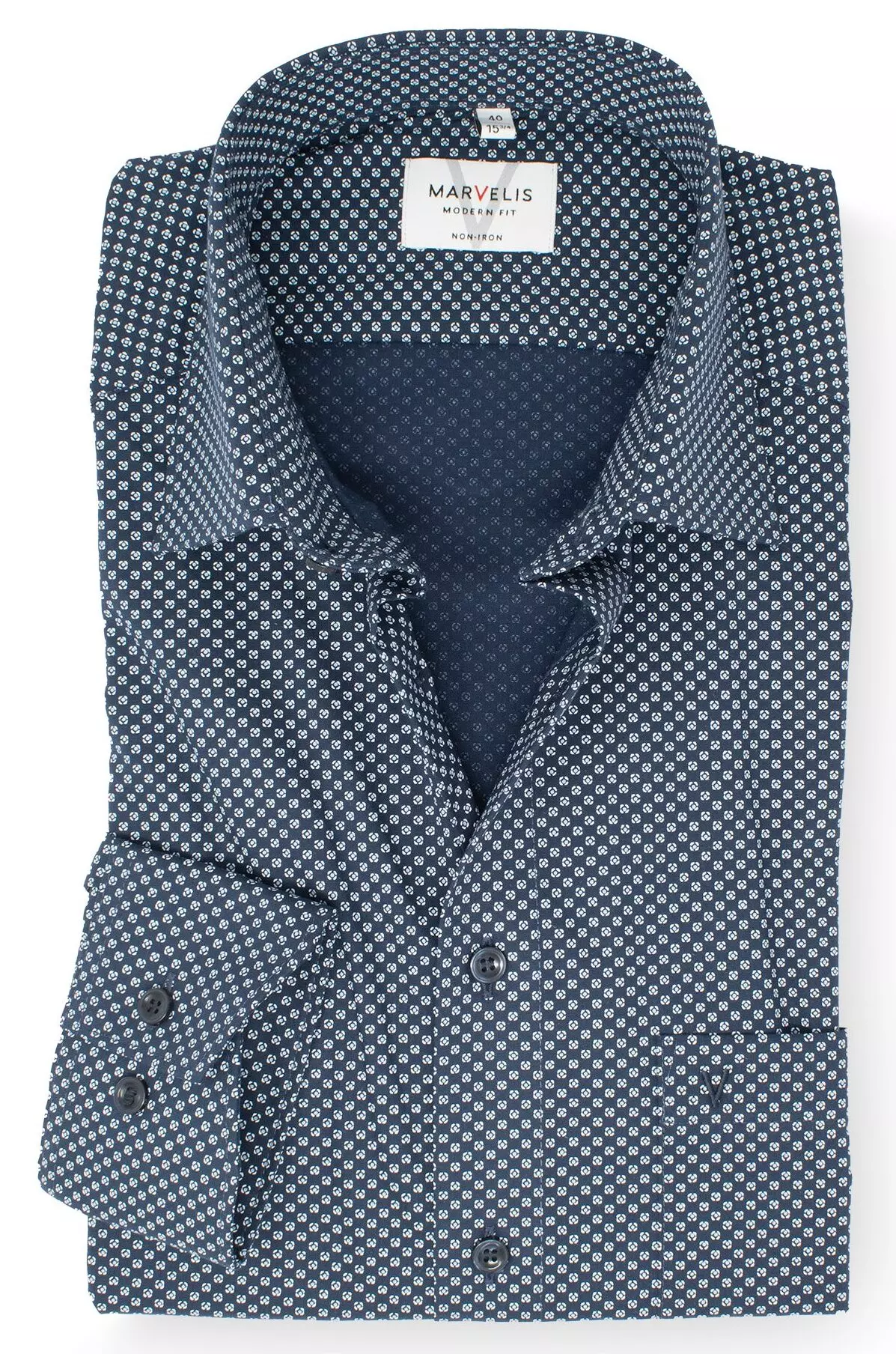 Marvelis overhemd lange mouw in een donkerblauw en lichtblauw fantasie design. Het overhemd heeft lange mouwen met borstzakje. Overhemd in model comfort fit is gemaakt van 100%katoen strijkvrij.