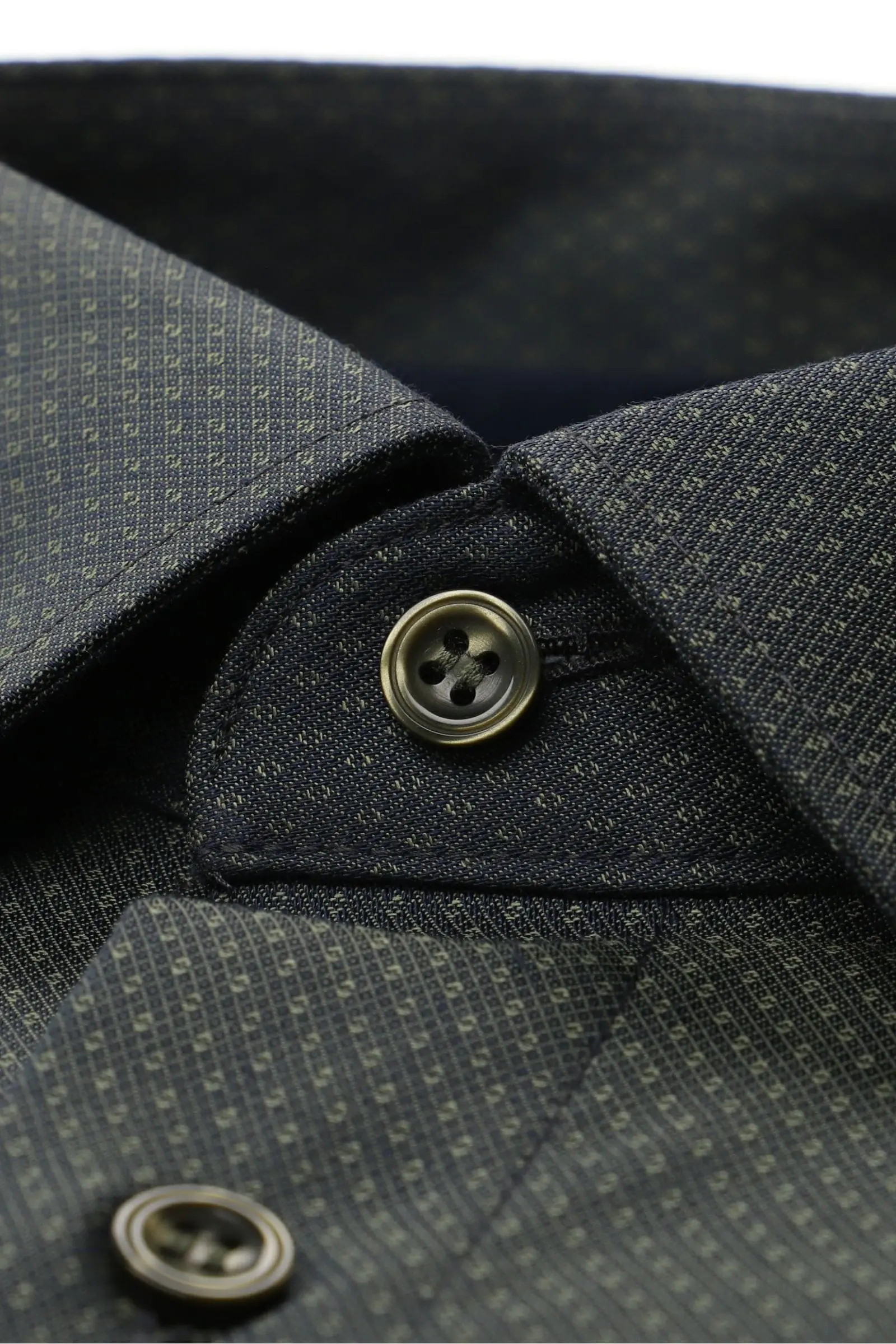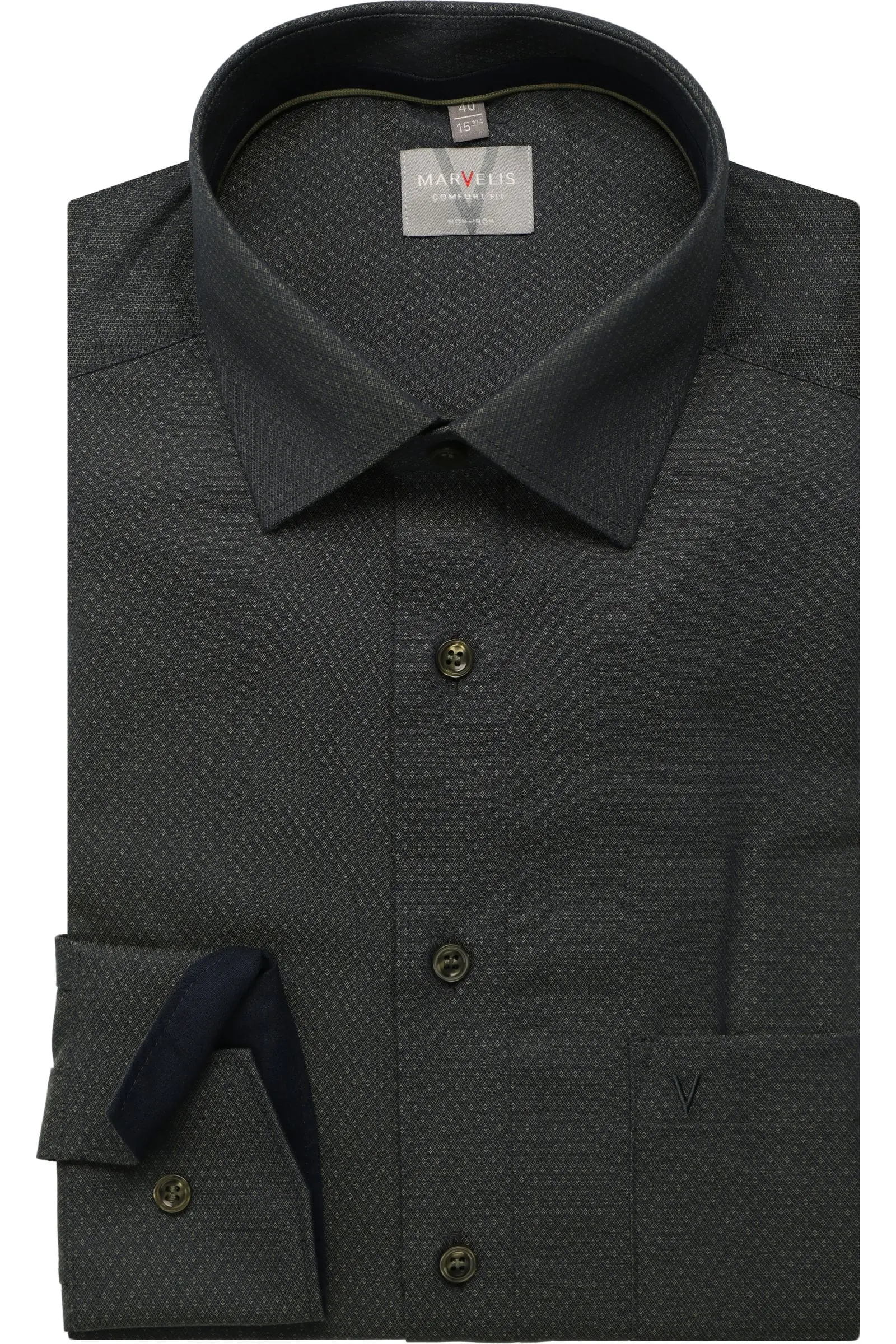 Marvelis overhemd met lange mouw met borstzakje in donkergroen met ingeweven werkje. Overhemd in model comfort fit is gemaakt van 100% katoen strijkvrij.