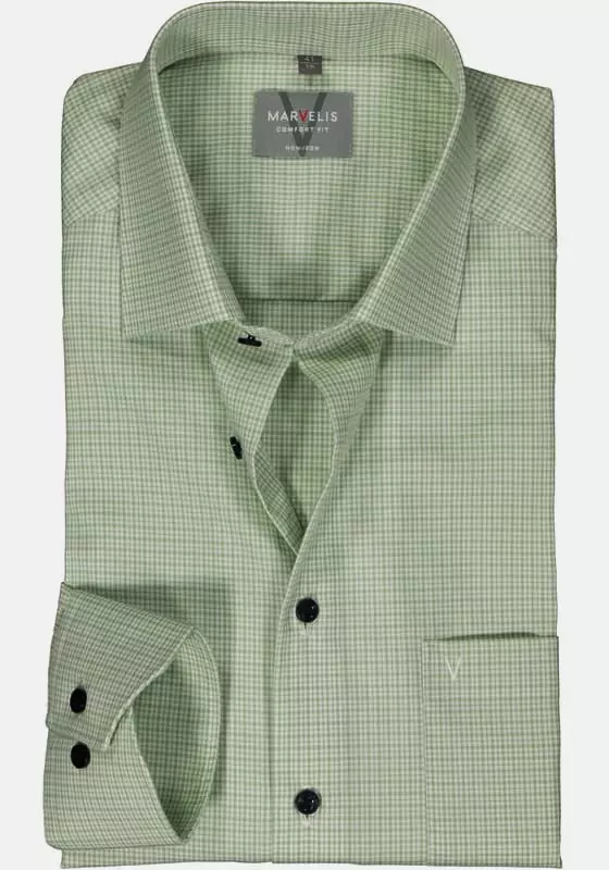 Marvelis overhemd lange mouw in een groen blokjes design. Het overhemd heeft lange mouwen met borstzakje. Overhemd in model comfort fit is gemaakt van 100%katoen strijkvrij.
