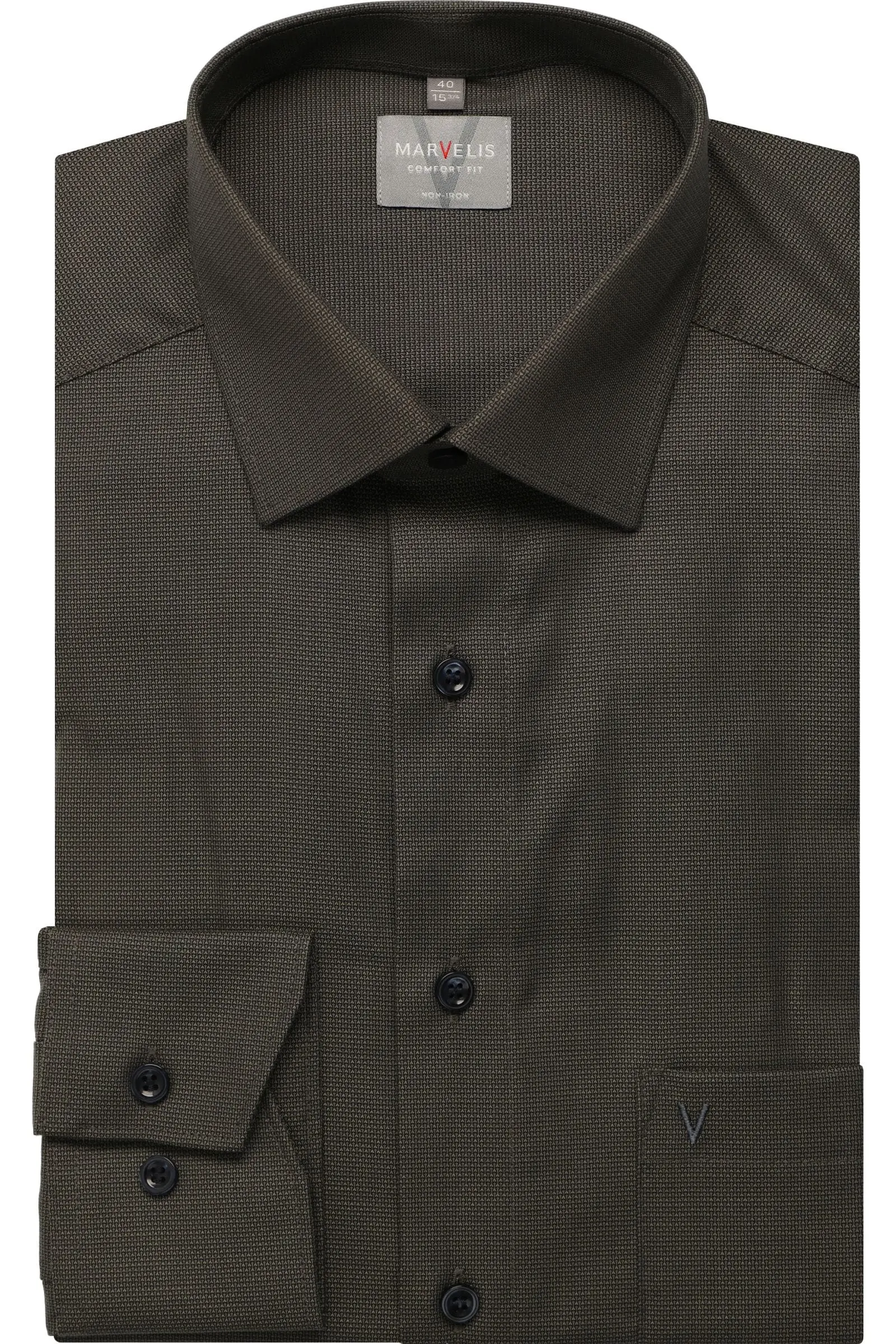 Marvelis overhemd lange mouw met borstzakje in groen design. Overhemd in model comfort fit is gemaakt van 100% katoen strijkvrij.