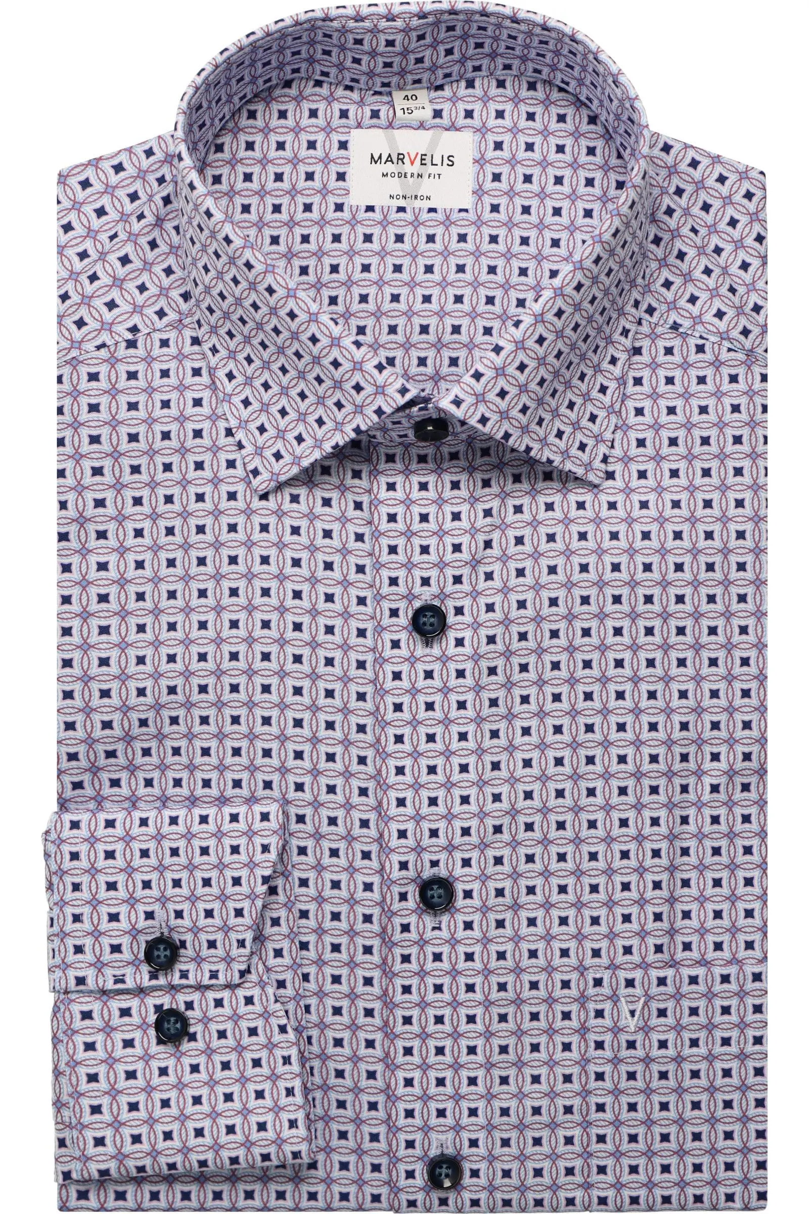 Marvelis overhemd met lange mouw met borstzakje in een lila en paars fantasie design. Overhemd in model comfort fit is gemaakt van 100% katoen strijkvrij.