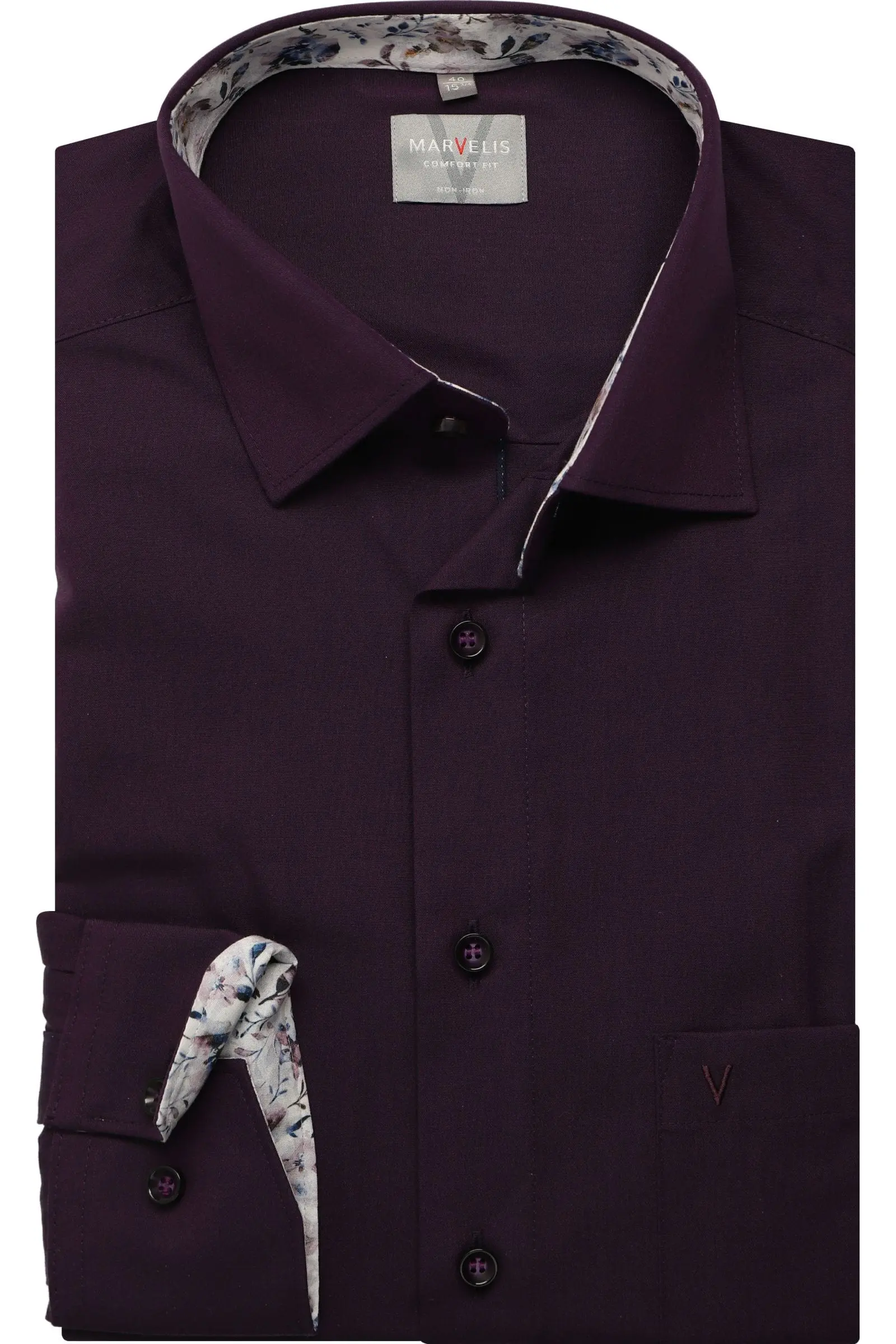 Marvelis overhemd lange mouw met borstzakje in paars design. Overhemd met in de kraag en manchetten een contrasterend stofje. Overhemd in model comfort fit is gemaakt van 100% katoen strijkvrij.