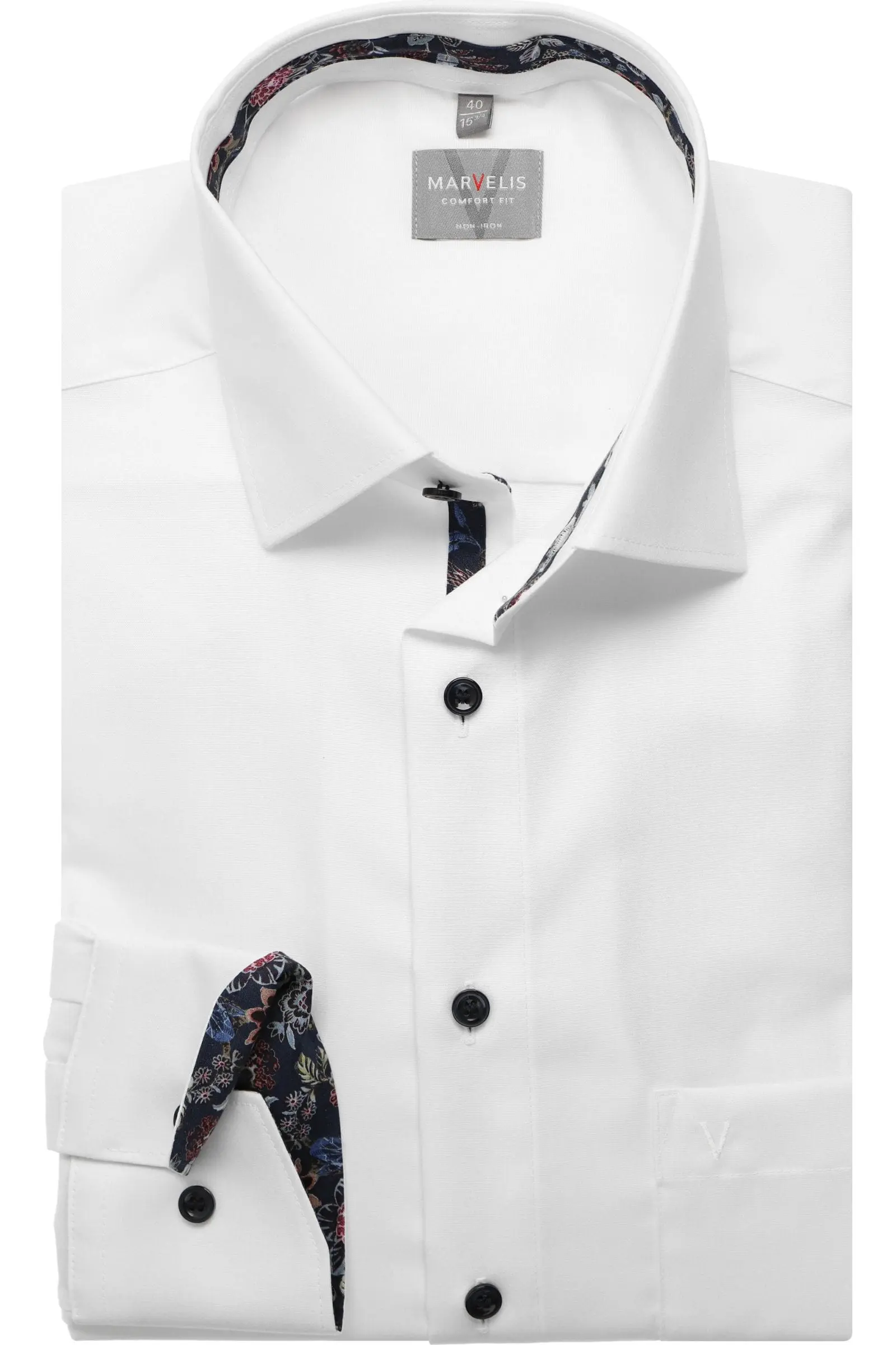 Marvelis grote maat overhemd lange mouw wit contrast strijkvrij. Het overhemd heeft lange mouwen met borstzakje. Overhemd in model comfort fit is gemaakt van 100% katoen strijkvrij.
