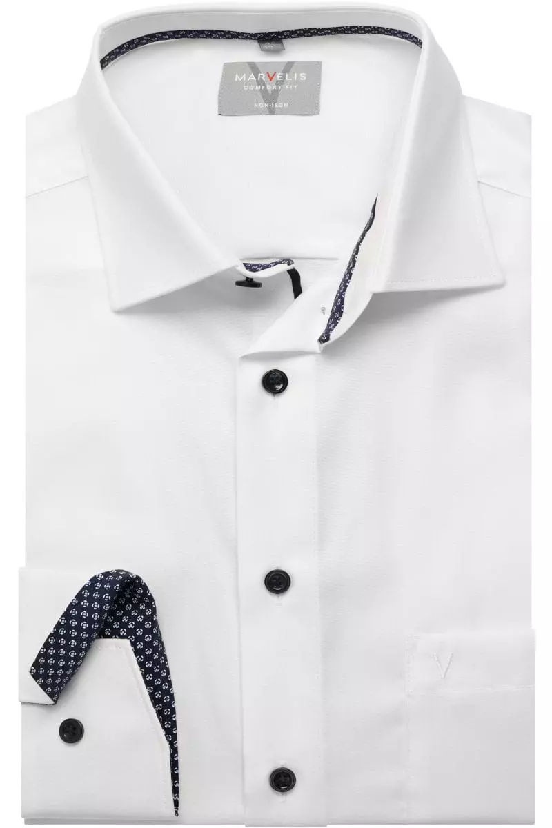 Marvelis grote maat overhemd lange mouw wit contrast strijkvrij. Het overhemd heeft lange mouwen met borstzakje. Overhemd in model comfort fit is gemaakt van 100% katoen strijkvrij.