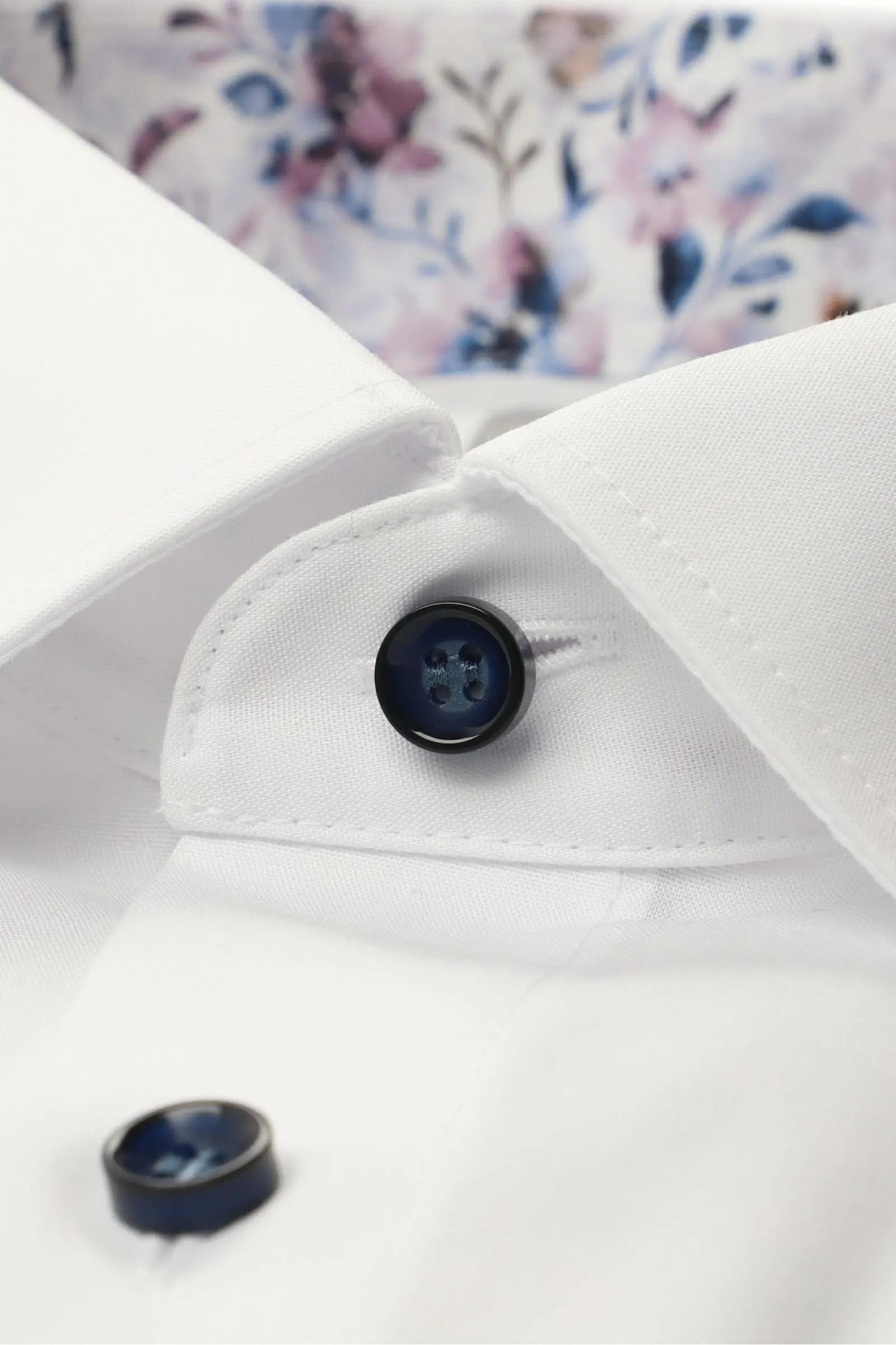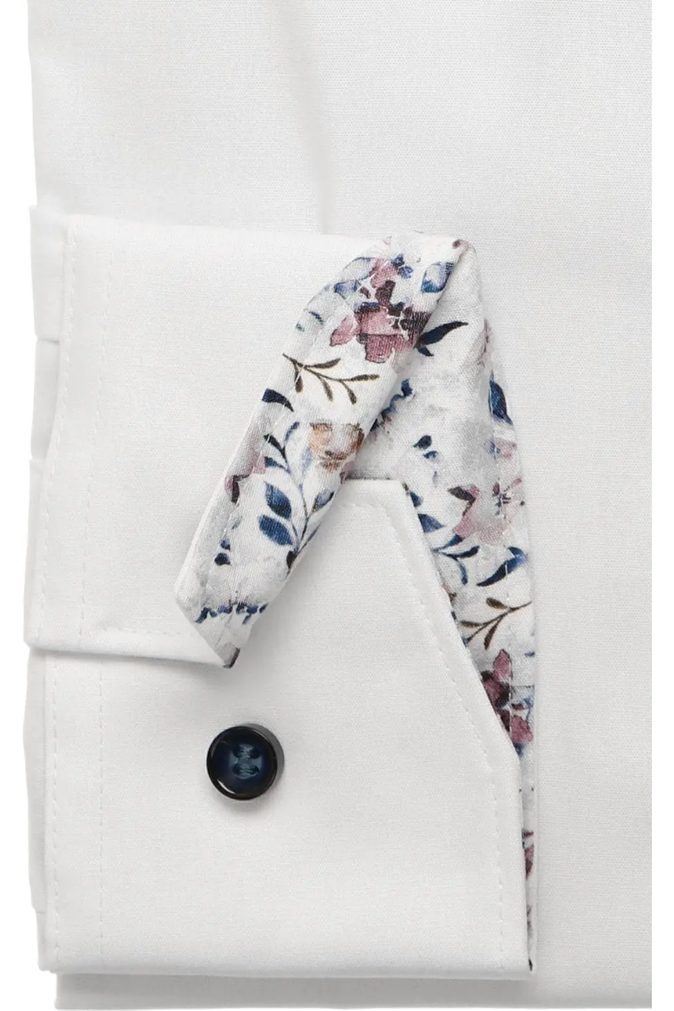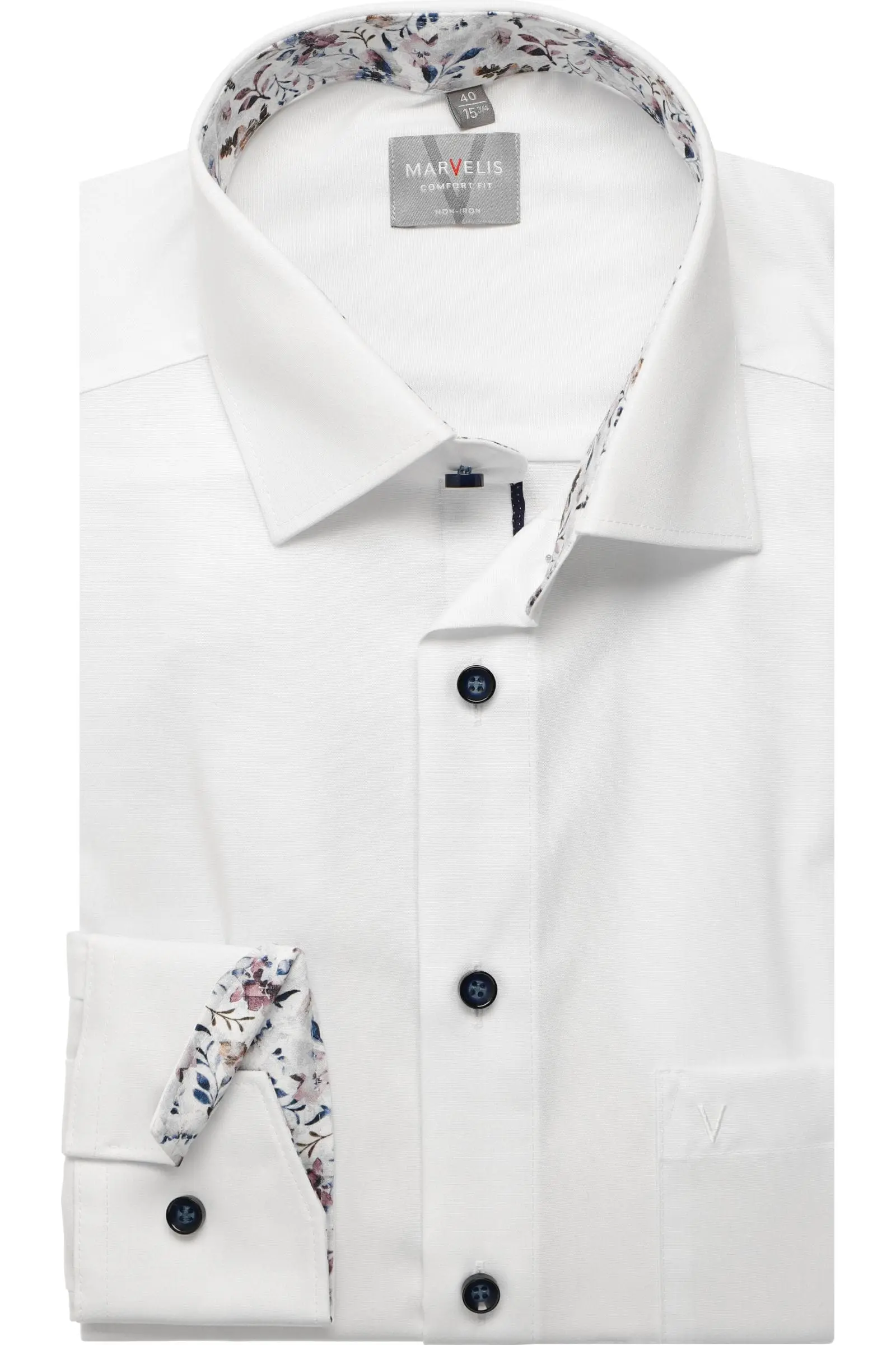 Marvelis overhemd met lange mouw met borstzakje in wit met in de kraag en manchetten bloem design. Overhemd in model comfort fit is gemaakt van 100% katoen strijkvrij.
