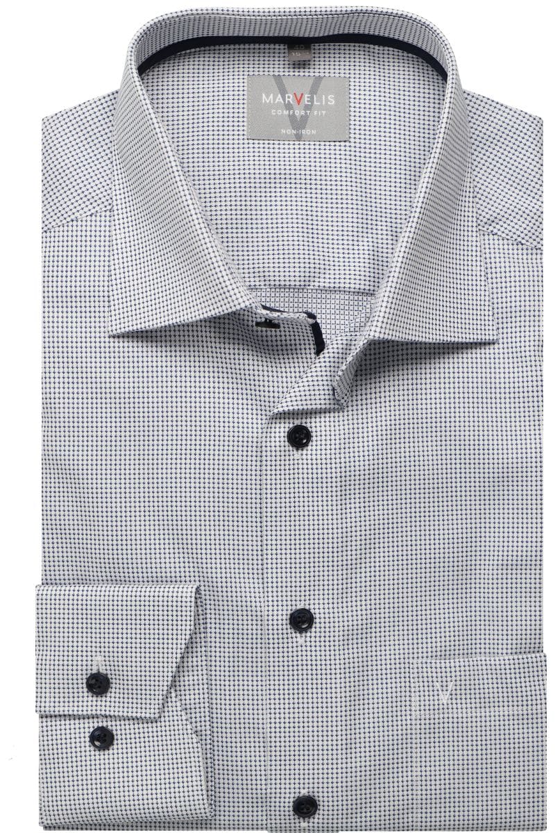 Marvelis grote maat overhemd lange mouw wit met blauw design strijkvrij. Het overhemd heeft lange mouwen met borstzakje. Overhemd in model comfort fit is gemaakt van 100% katoen strijkvrij.