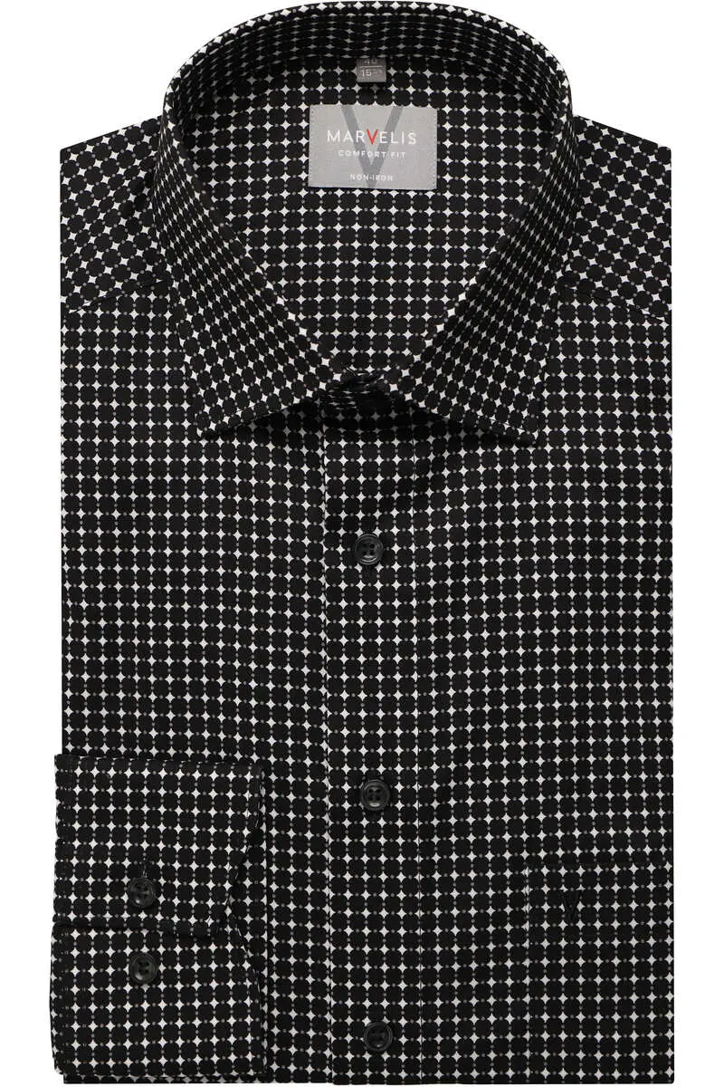 Marvelis grote maat overhemd lange mouw zwart met wit fantasie design. Het overhemd heeft lange mouwen met borstzakje. Overhemd in model comfort fit is gemaakt van 100%katoen strijkvrij.