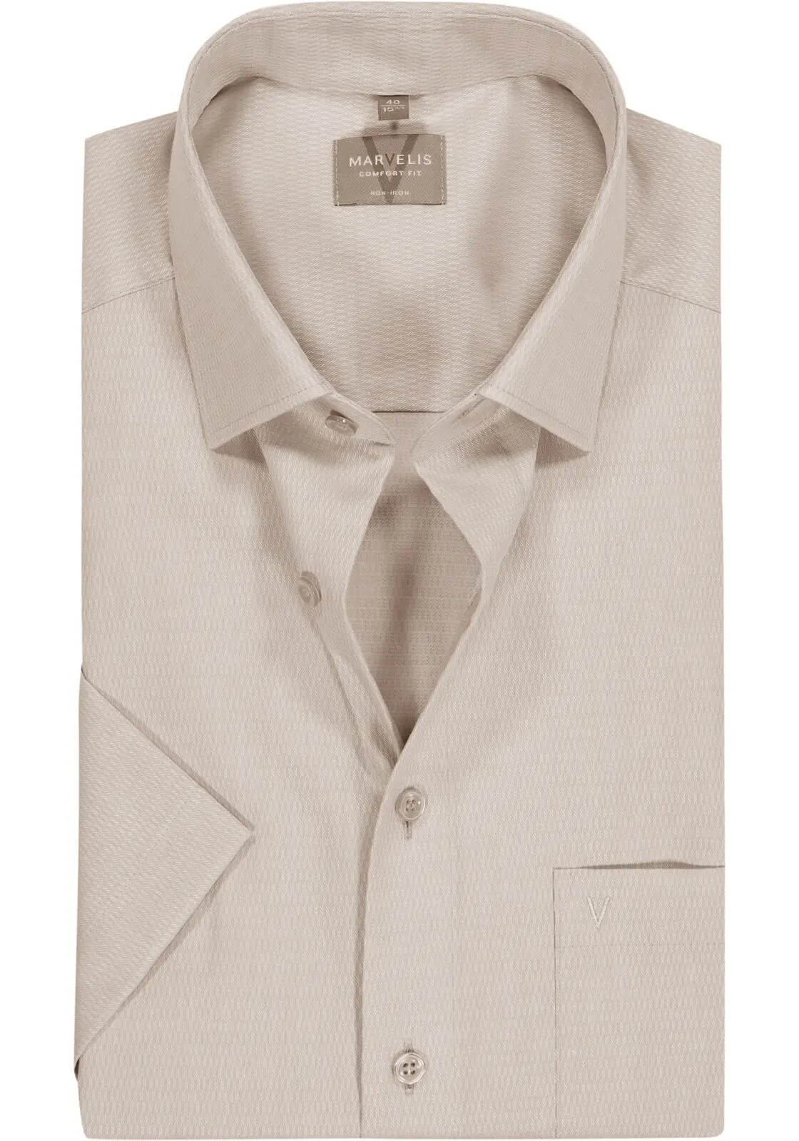 Marvelis overhemd korte mouw met borstzakje in beige met een ingeweven structuurtje. Overhemd in 100% katoen strijkvrij.
