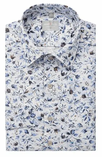 Marvelis overhemd korte mouw blauw bloem dessin. Marvelis overhemd korte mouw zonder borstzakje in een blauw bloem dessin. Overhemd in model comfort fit 100% katoen strijkvrij.