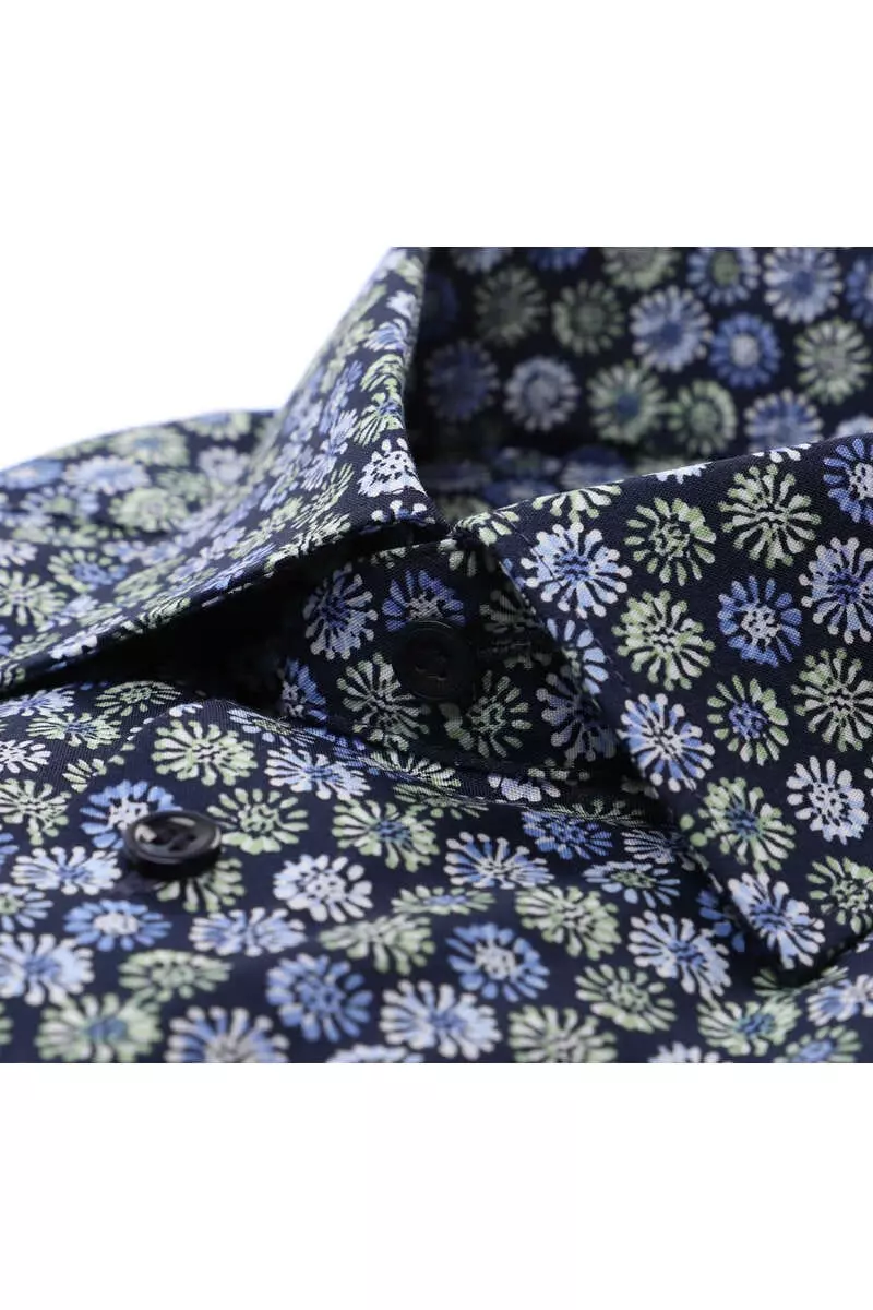 Marvelis overhemd korte mouw met een borstzakje in een blauw en groen fantasie design. Overhemd is gemaakt van 100%katoen strijkvrij. Marvelis overhemd in model comfort fit.