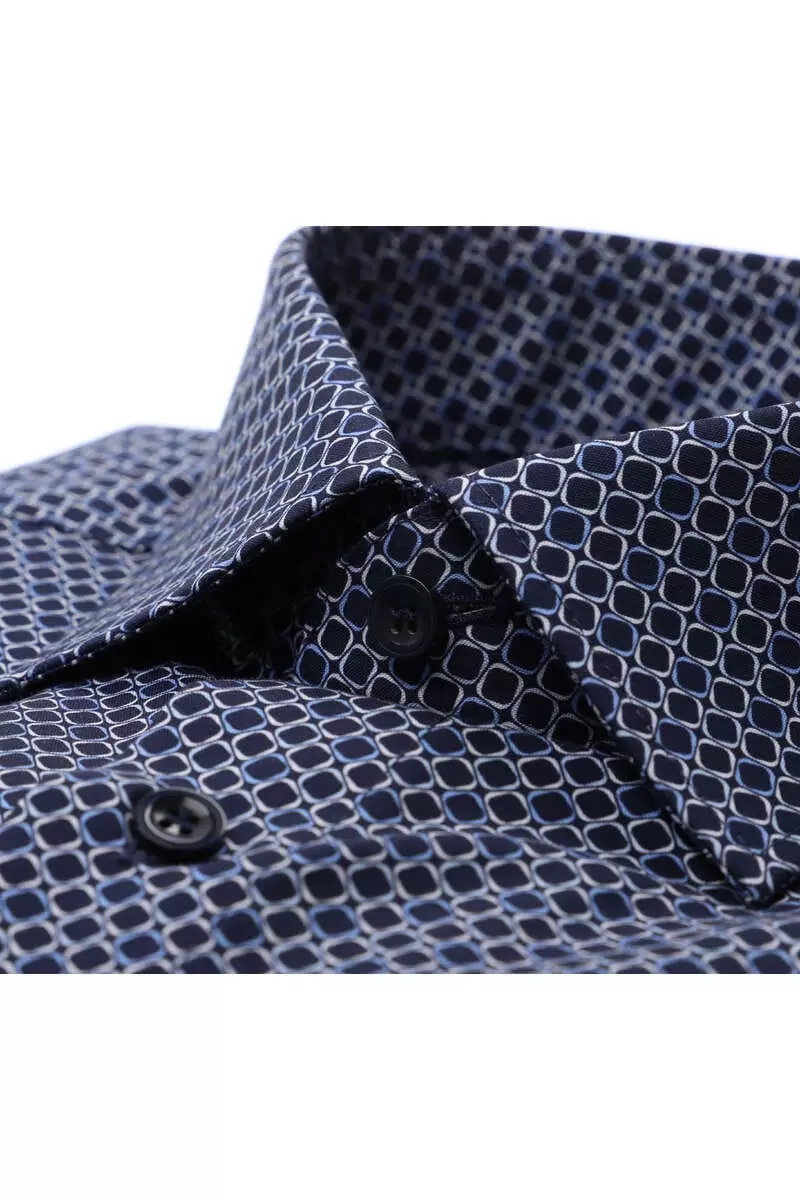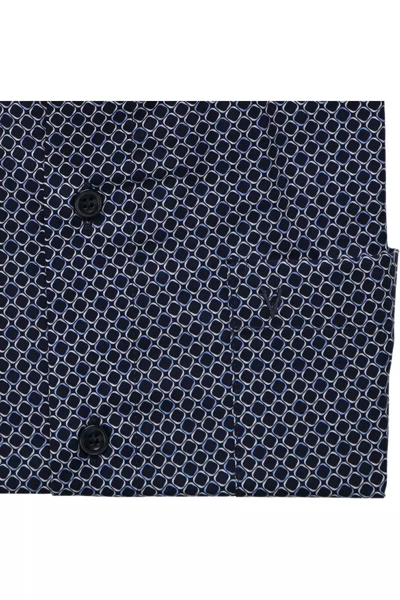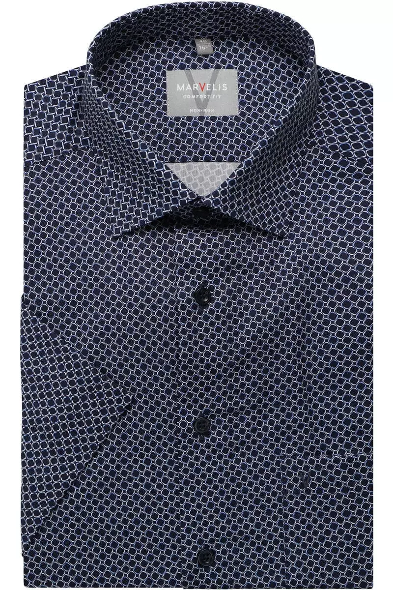 Marvelis overhemd korte mouw met een borstzakje in donkerblauw, lichtblauw en wit fantasie design. Overhemd is gemaakt van 100%katoen strijkvrij. Marvelis overhemd in model comfort fit.