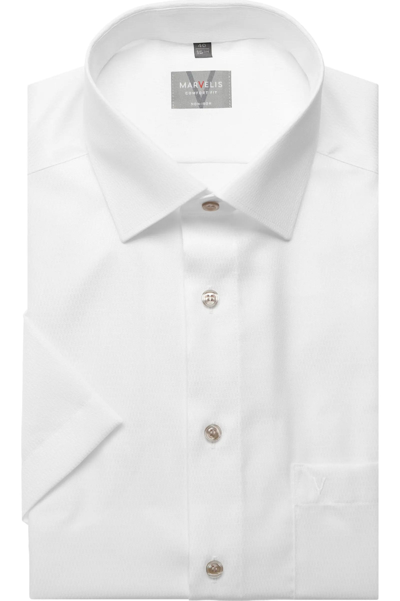 Marvelis overhemd korte mouw wit design. Marvelis overhemd korte mouw met borstzakje in wit met een ingeweven structuurtje. Overhemd in 100% katoen strijkvrij.