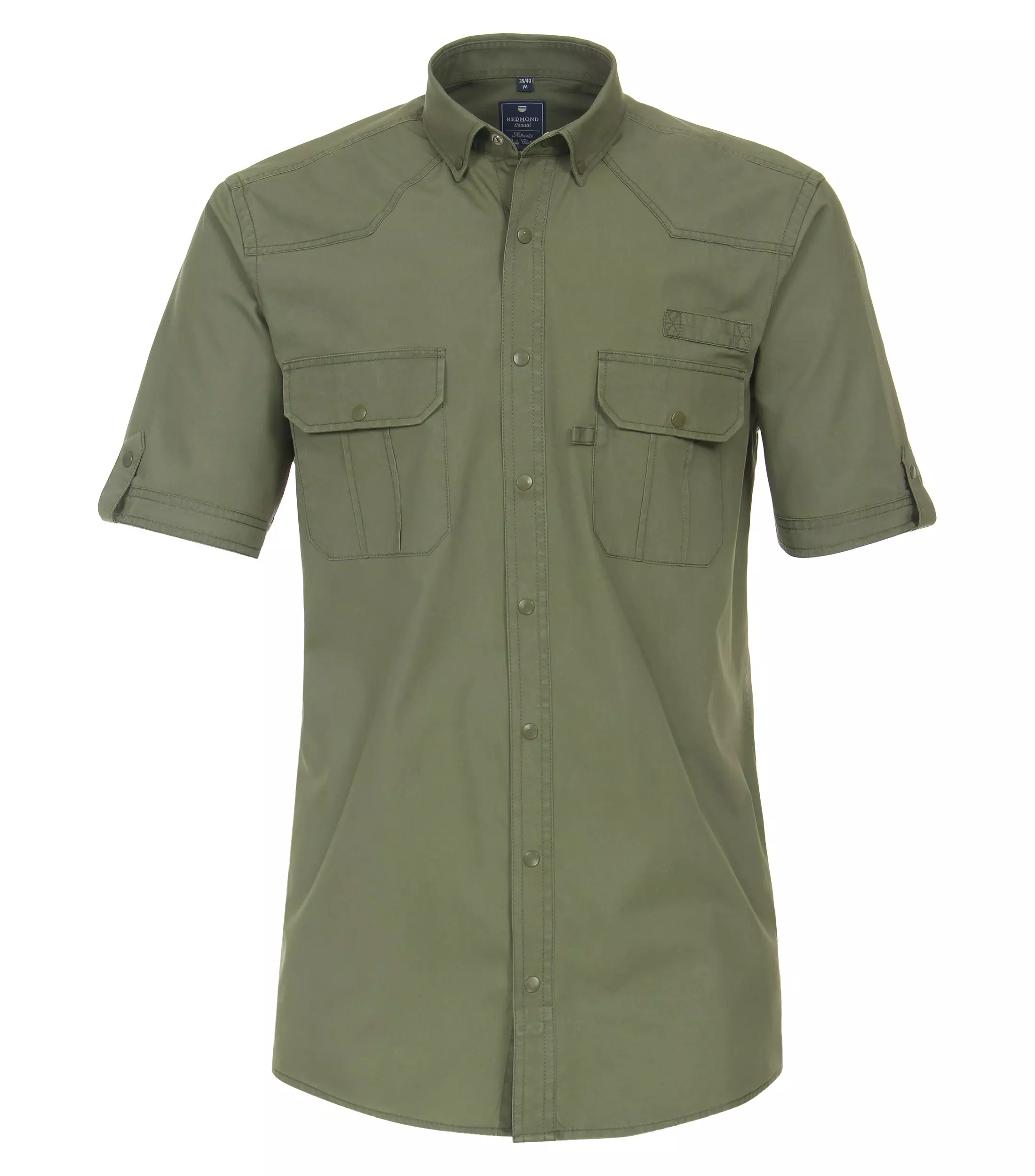 Redmond overhemd korte mouw met borstzakje uni groen dubbele borstzakken.