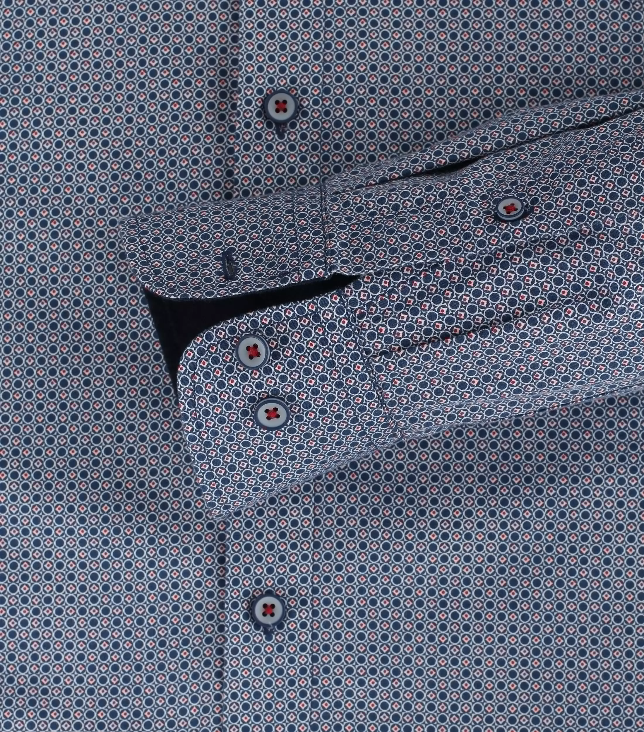 Redmond overhemd lange mouw met kraag button down in een blauw en rood fantasie patroon.
