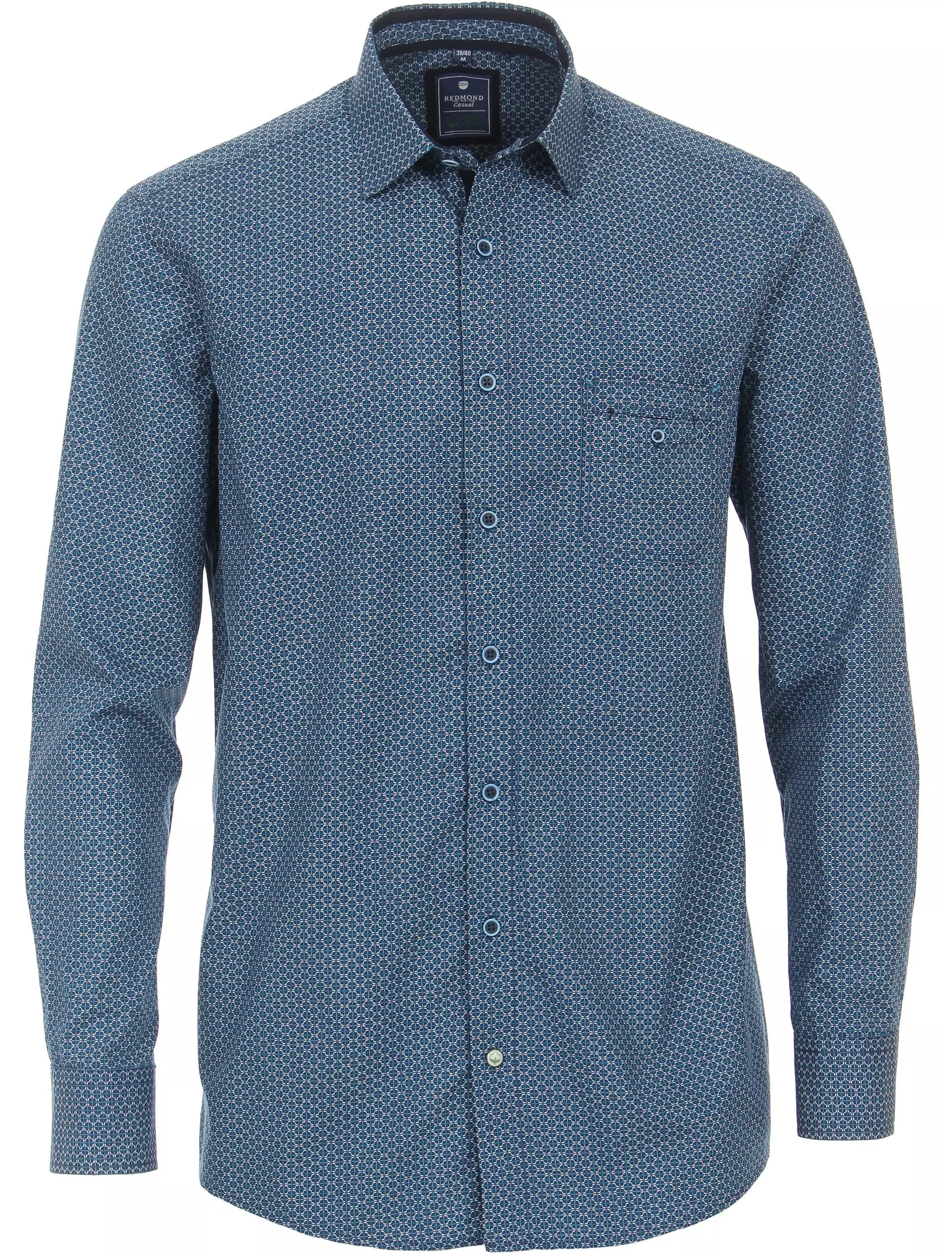 Redmond overhemd lange mouw in een blauw fantasie design button down. Redmond overhemd lange mouw met borstzakje en kraag button down. 100% katoen model comfort fit.
