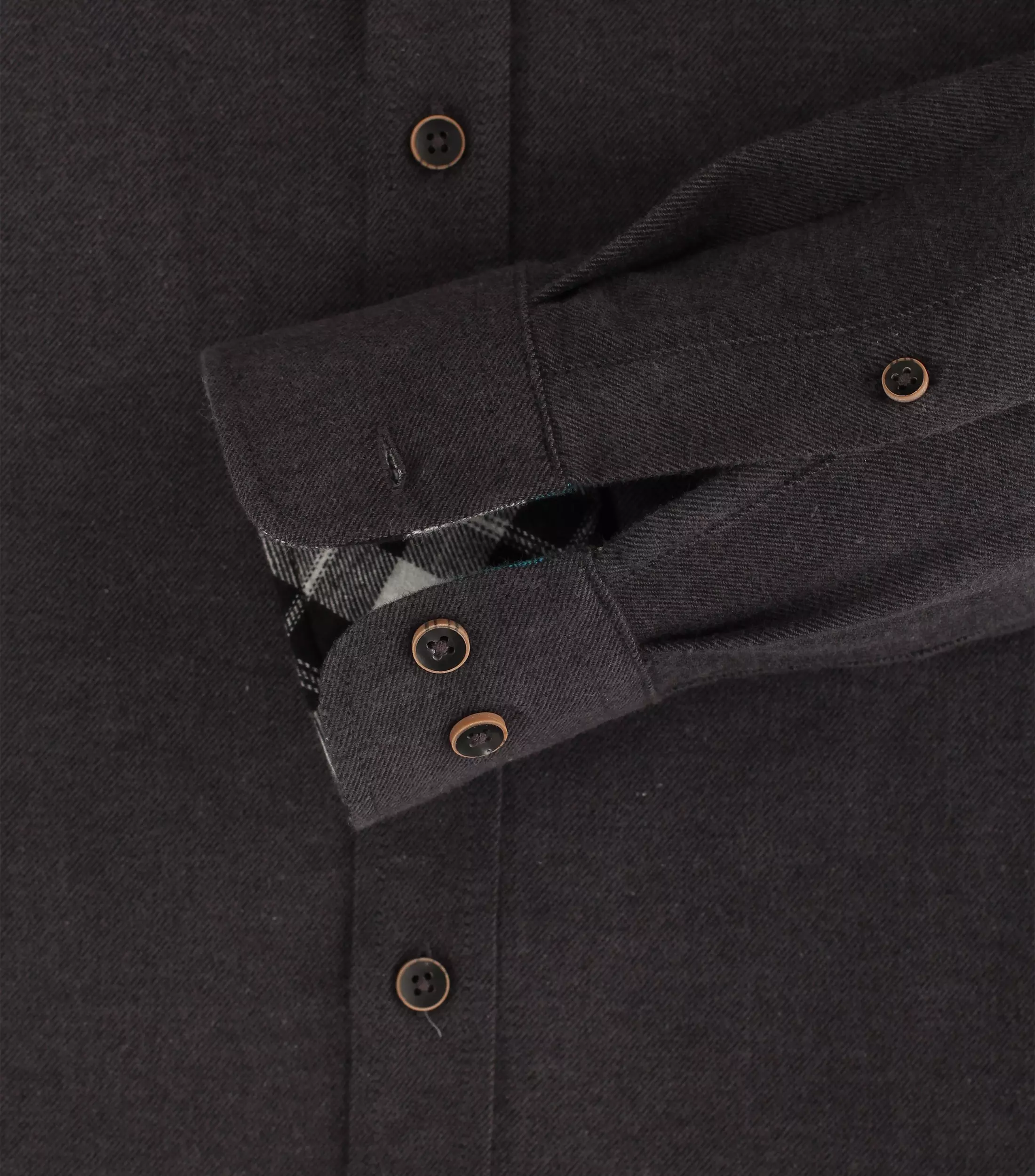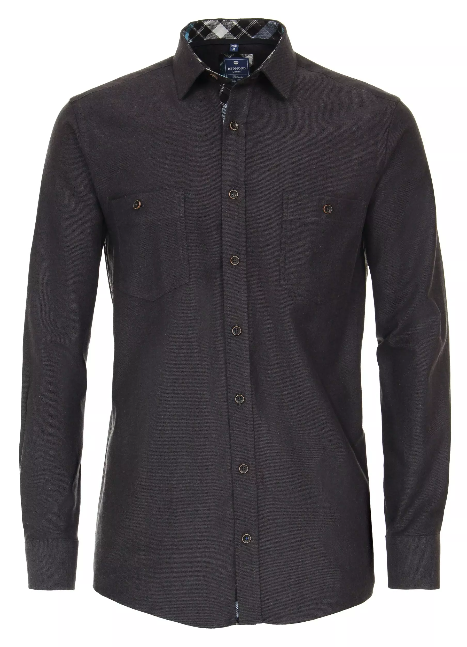 Redmond overhemd lange mouw met 1 borstzak in donkergrijs afgezet met een contrasterend stofje aan de binnenkant kraag. Redmond overhemd in 100% katoen flanel model comfort fit.