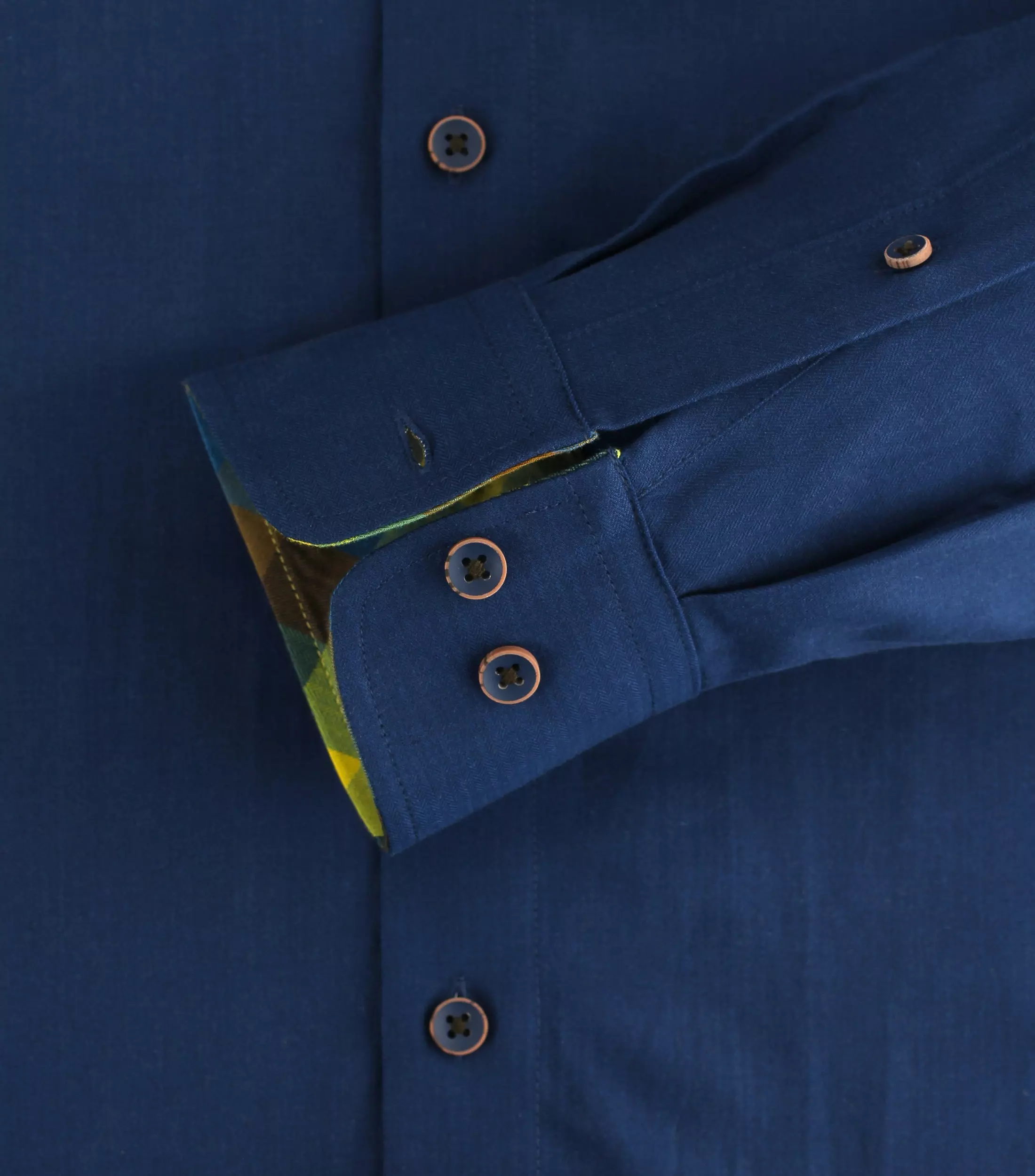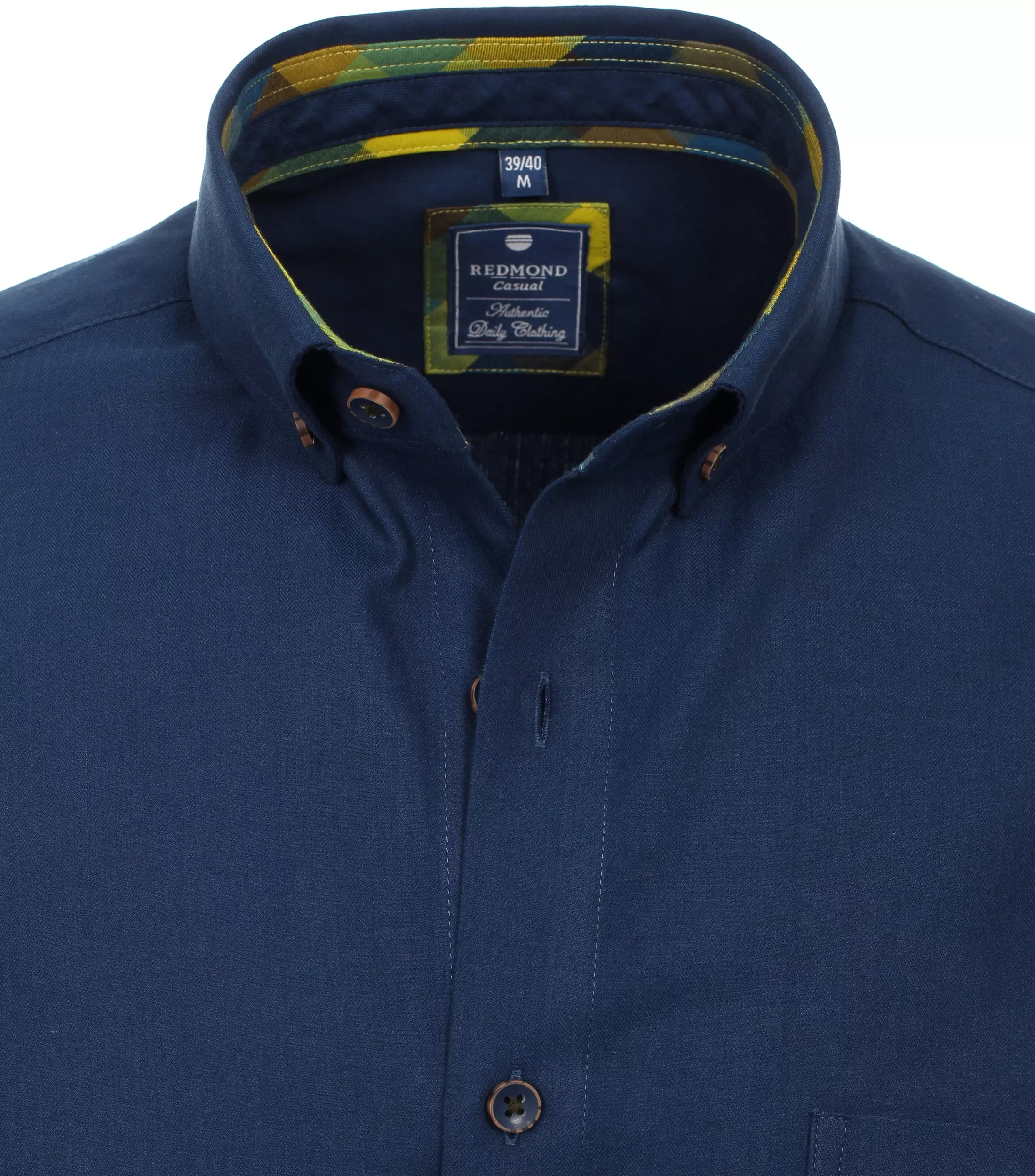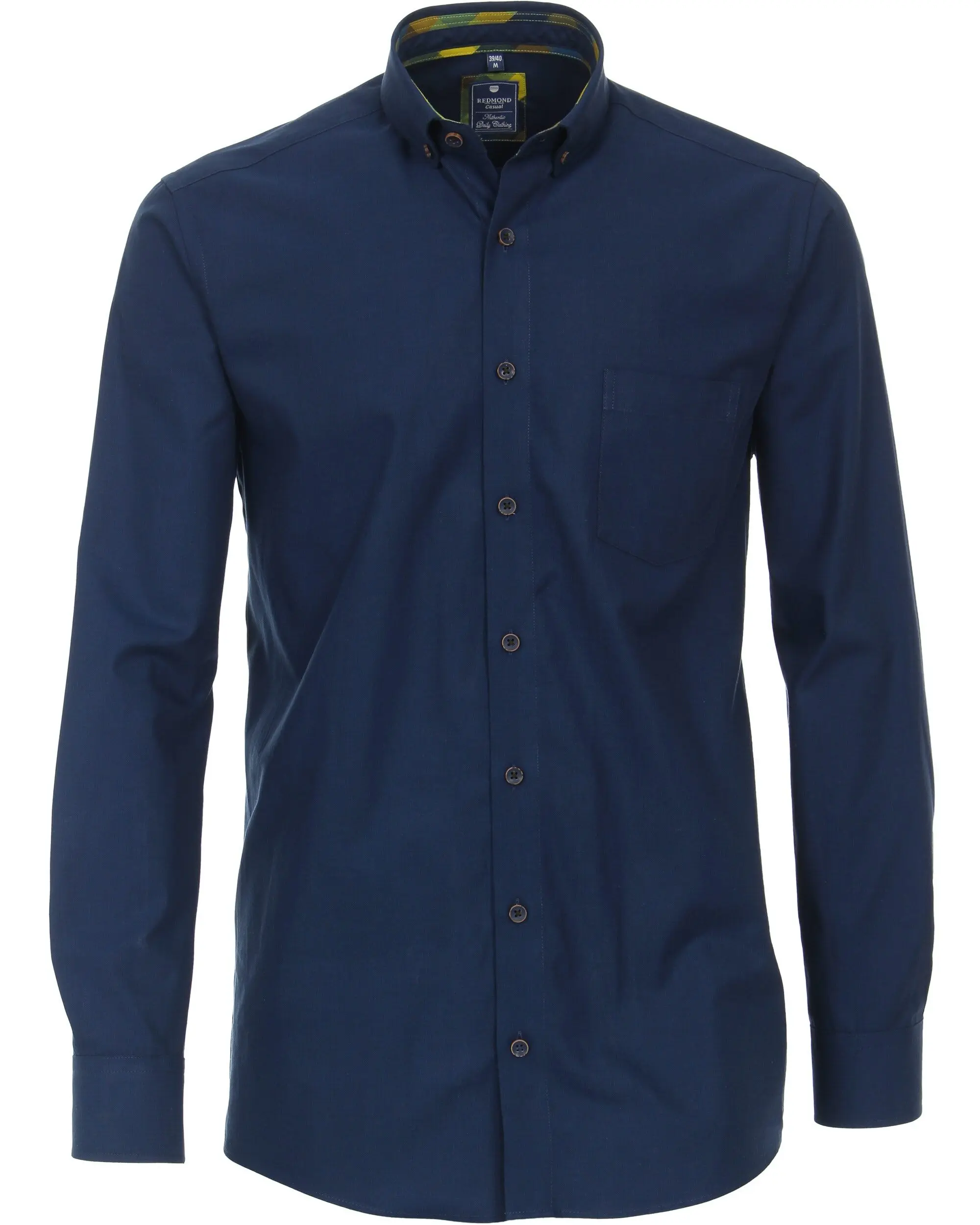 Redmond overhemd lange mouw uni donkerblauw met borstzakje en kraag button down. 100% katoen.