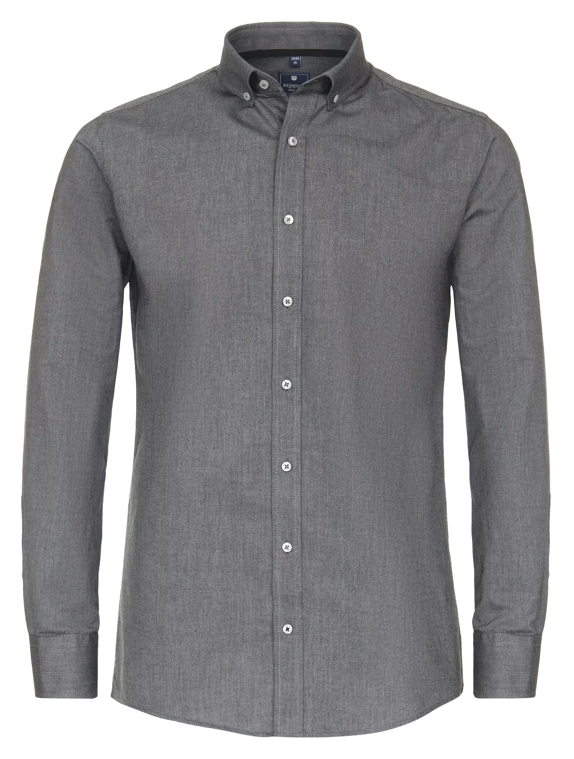 Redmond overhemd lange mouw uni grijs zonder borstzakje en kraag button down. 100% katoen.