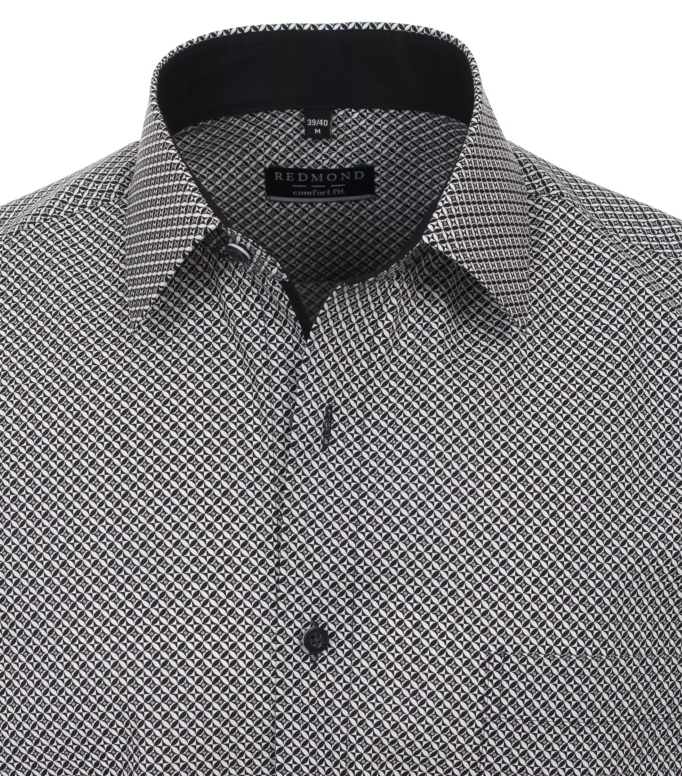 Redmond overhemd grote maat lange mouw zwart en wit fantasie patroon strijkvrij.