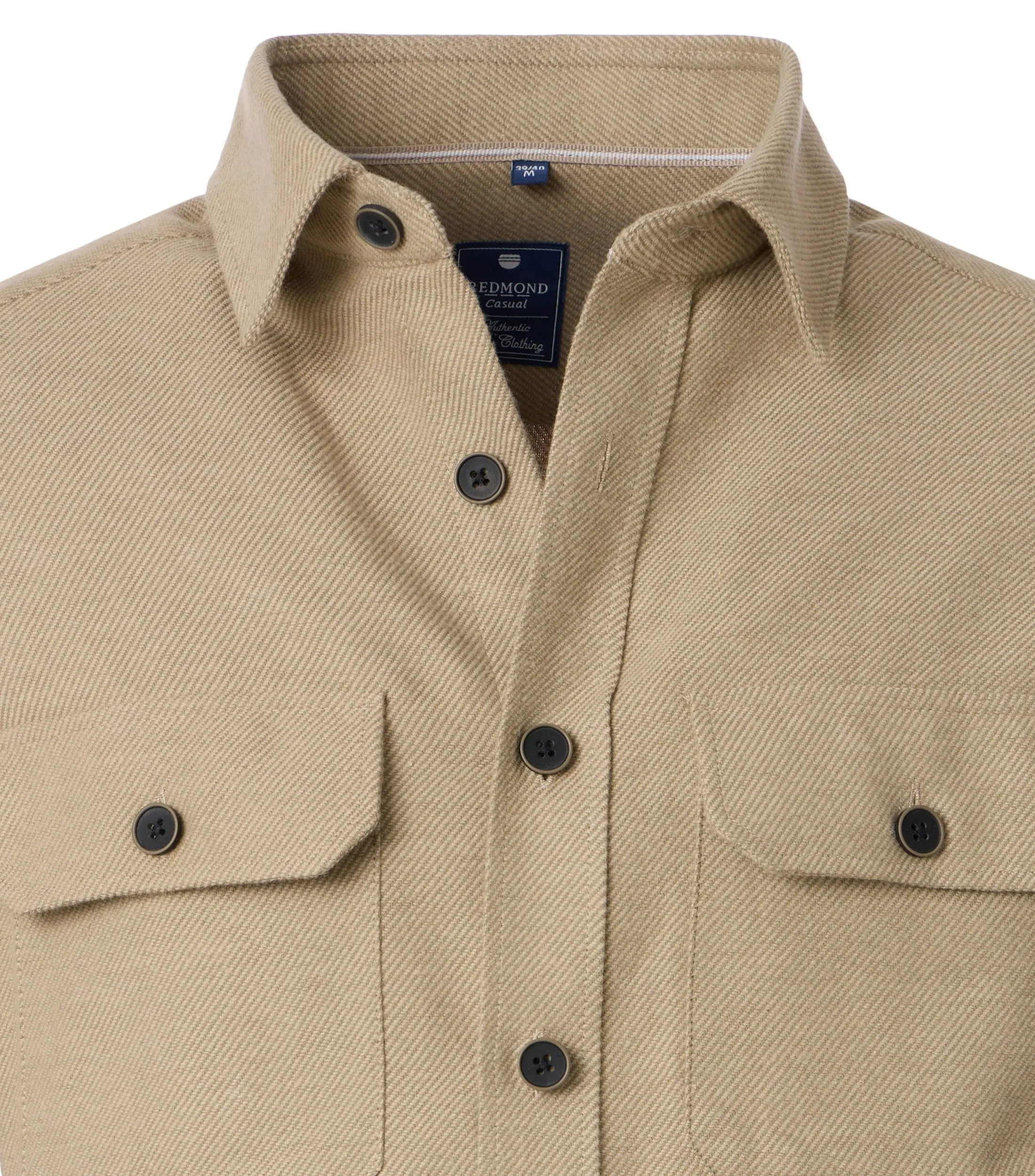 Redmond grote maat overshirt beige flanel. Redmond overshirt lange mouw met dubbele borstzakken in 100% katoen flanel zware kwaliteit.