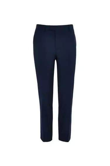 Luigi Morini stretch pantalon in een door draag kwaliteit donkerblauw. Model met twee schuine steekzakken voor en twee achterzakken met knoop. Een gulp met ritssluiting. De hoogwaardige Duitse kwaliteit is 64%polyester, 34%wol en 2%elastan machine wasbaar 30graden.