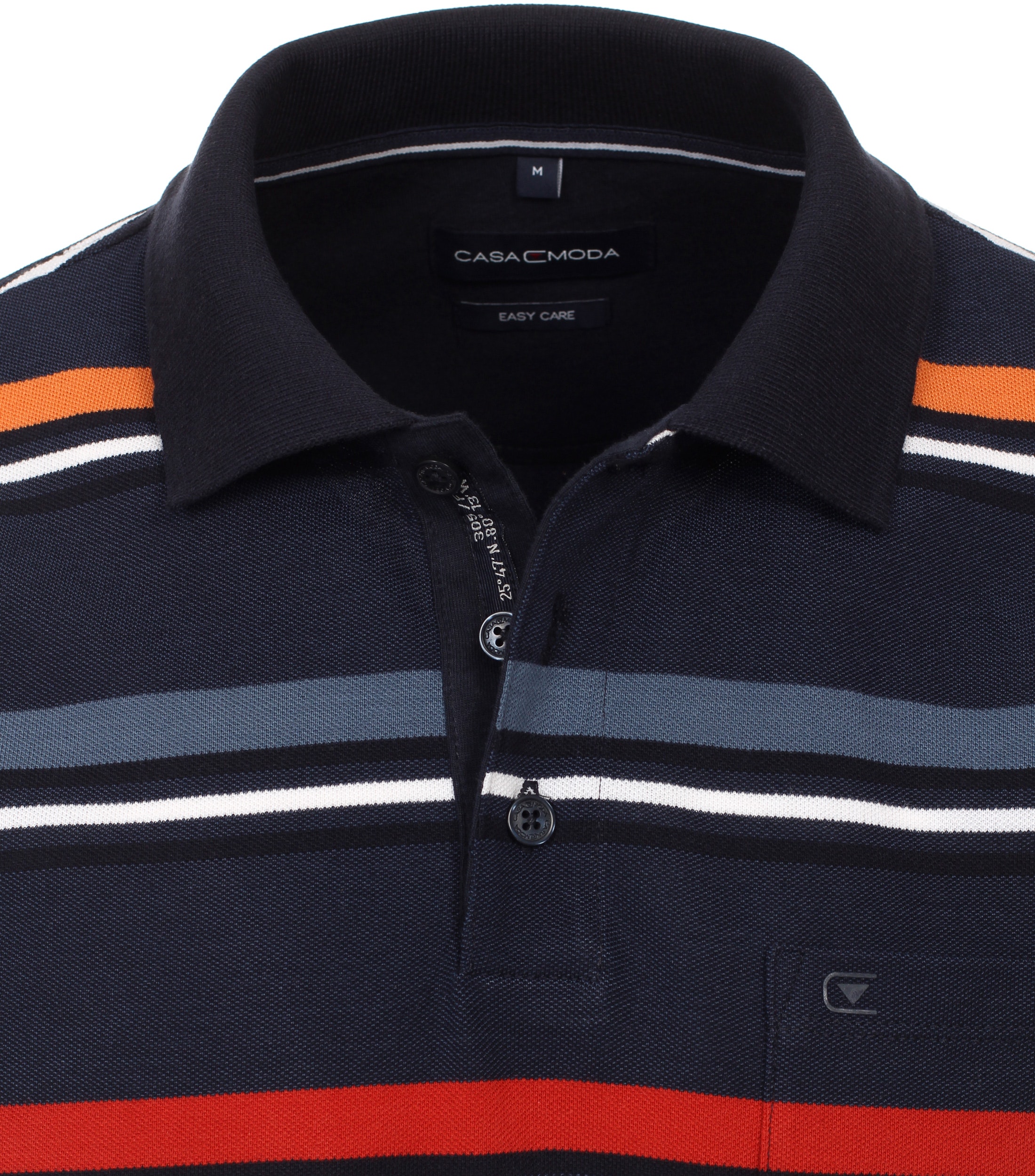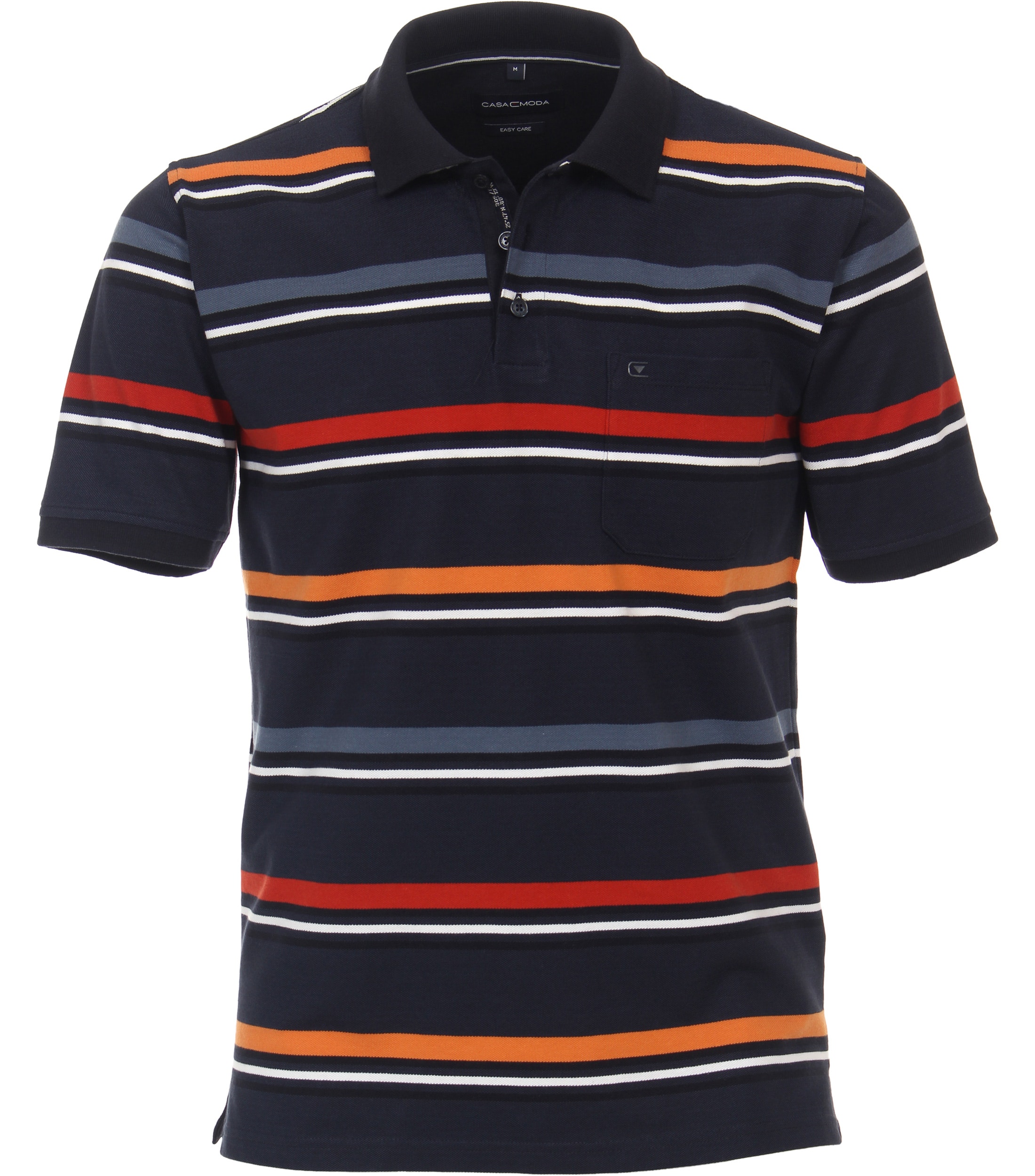 Casa Moda poloshirt korte mouw met borstzakje in donkerblauw met blauw, oranje, terra en wit design.