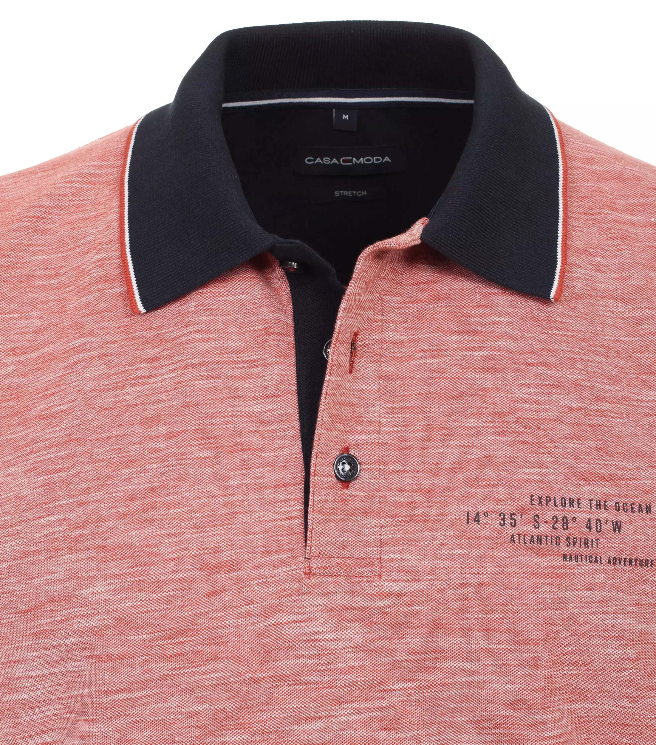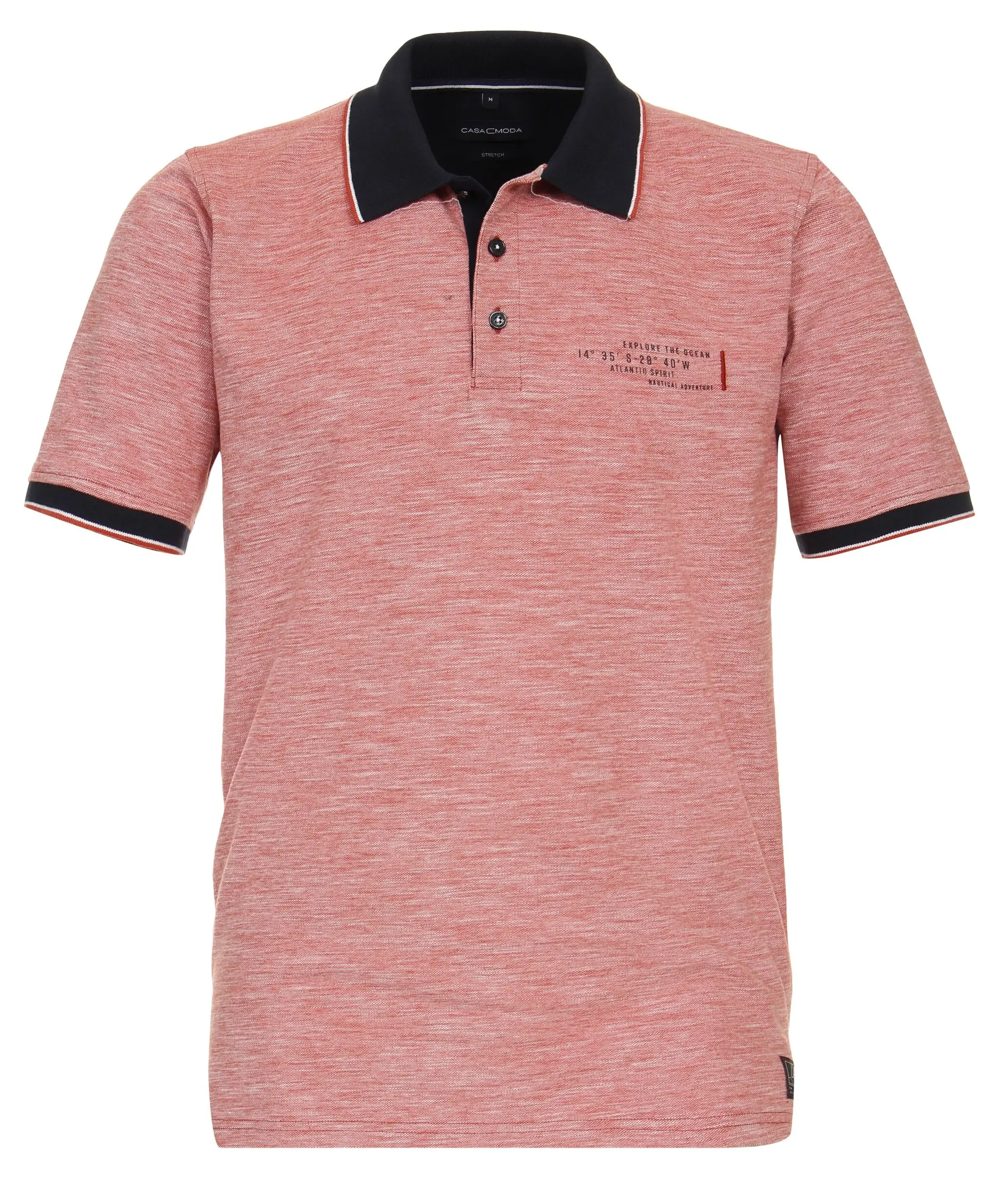 Casa Moda poloshirt korte mouw rood gemêleerd met applicatie. Poloshirt met korte mouw in 95% katoen en 5% elastan.