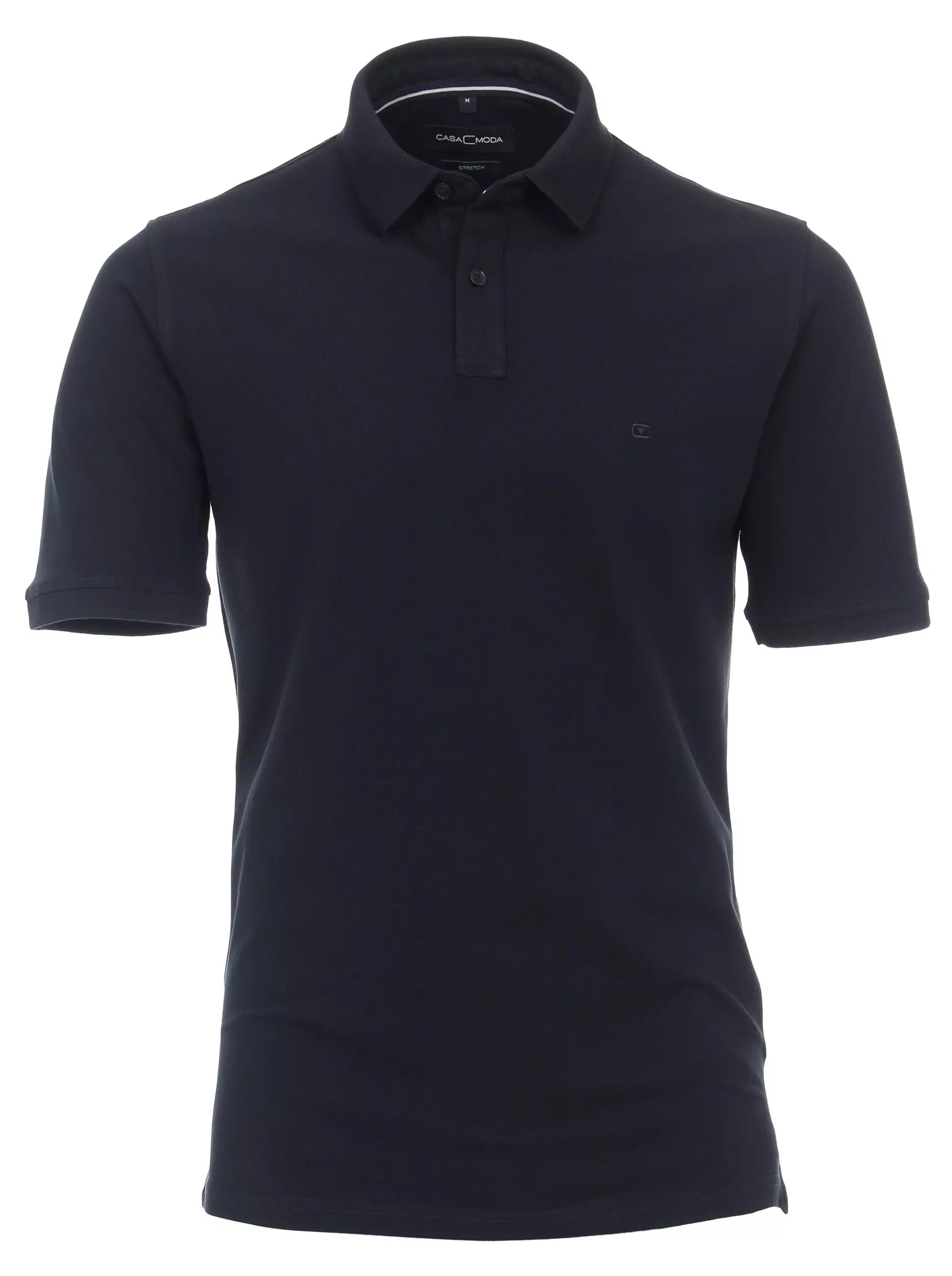 Poloshirt met korte mouw in 95%katoen en 5%elastan pique.### Comfort en Stijl Gecombineerd: Casa Moda Stretch Poloshirt Korte Mouw in Uni Donkerblauw