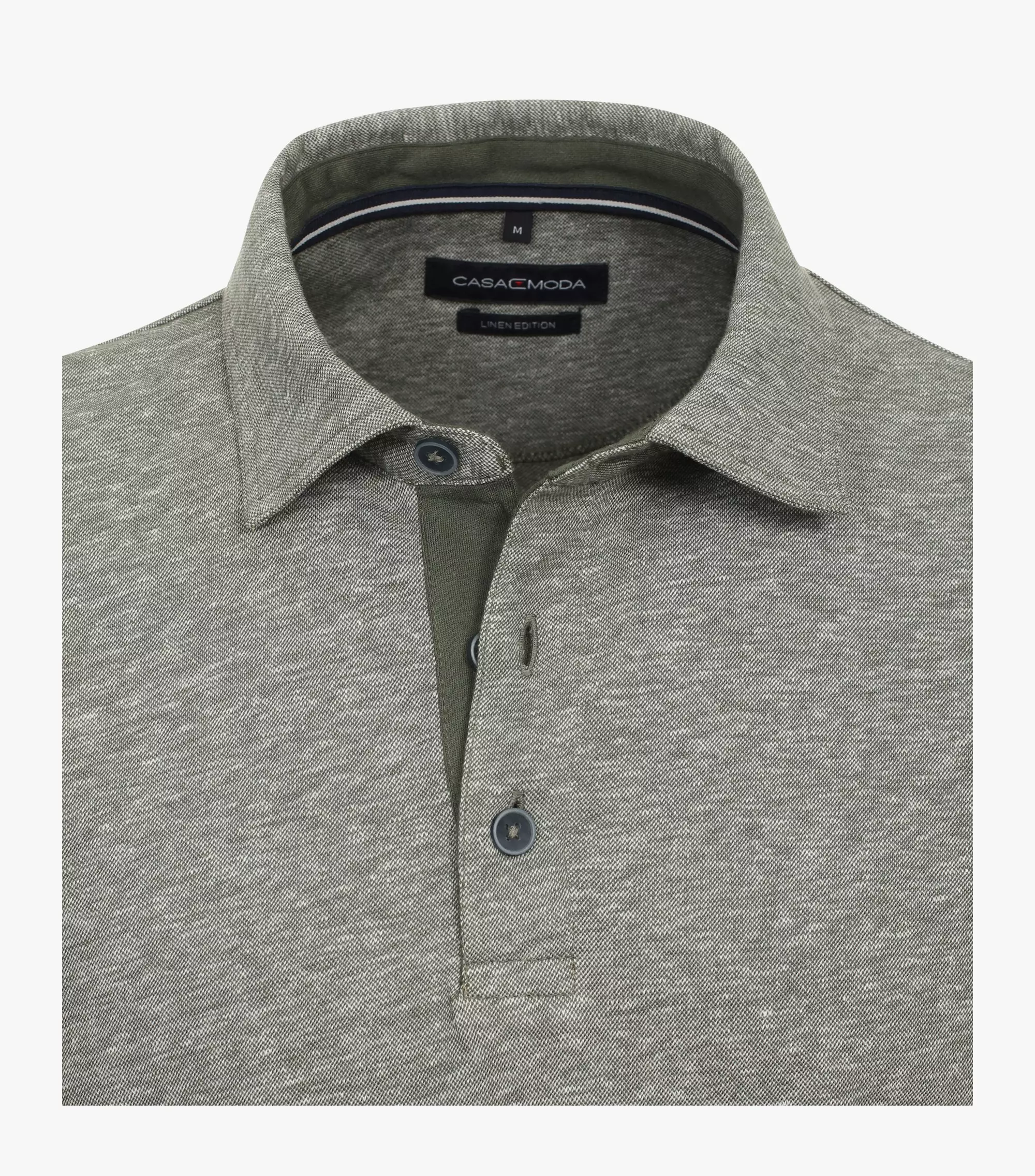 Poloshirt met korte mouw in 70%katoen en 30%linnen pique.Ontdek het ultieme comfort en stijl met het groene poloshirt van Casa Moda, verkrijgbaar in grote maten van 3XL tot 6XL. Dit poloshirt met korte mouwen biedt een perfecte combinatie van stijl en functionaliteit.