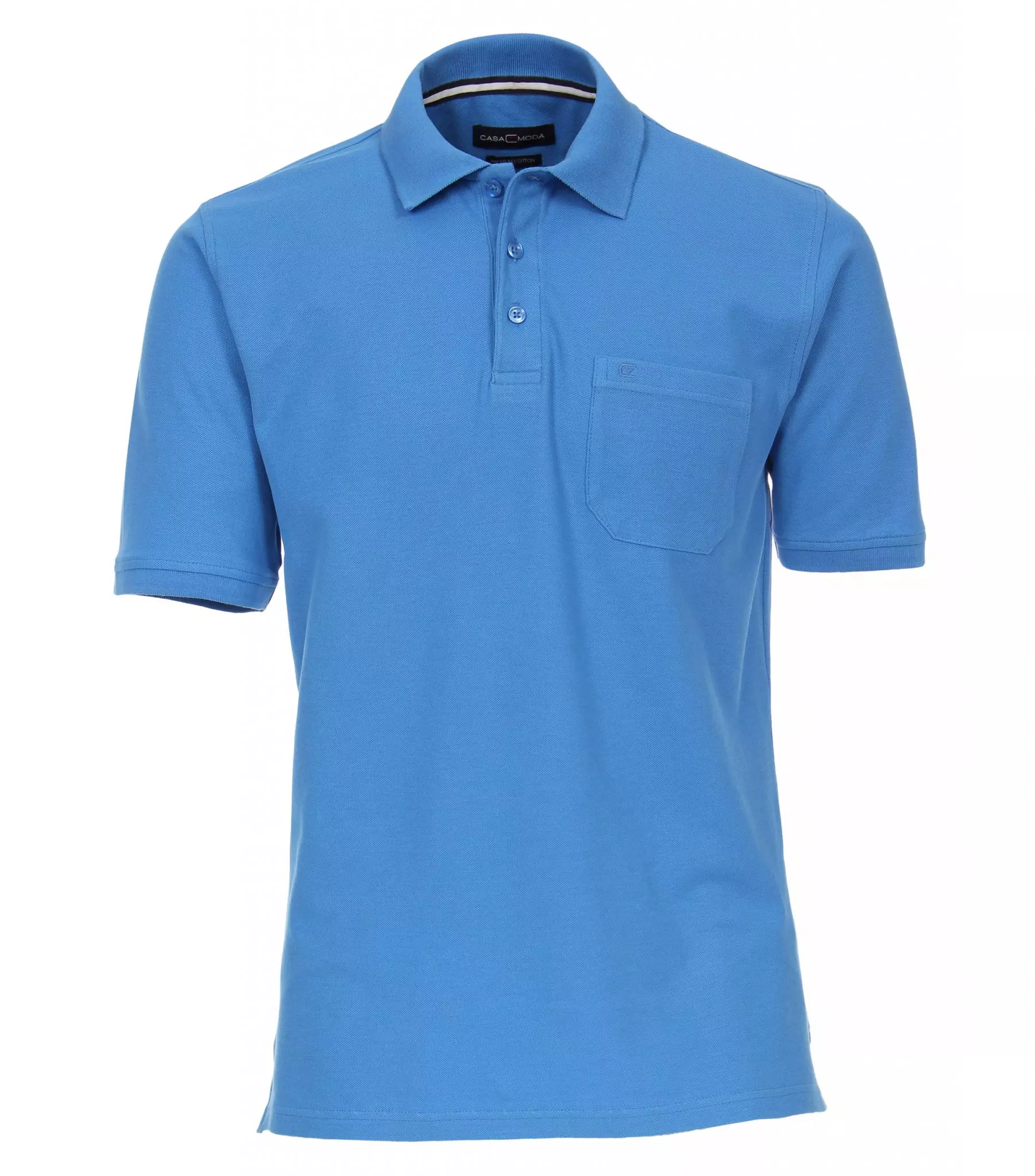 Casa Moda poloshirt korte mouw in uni middenblauw met borstzakje. De kwaliteit is 100% katoen pique.