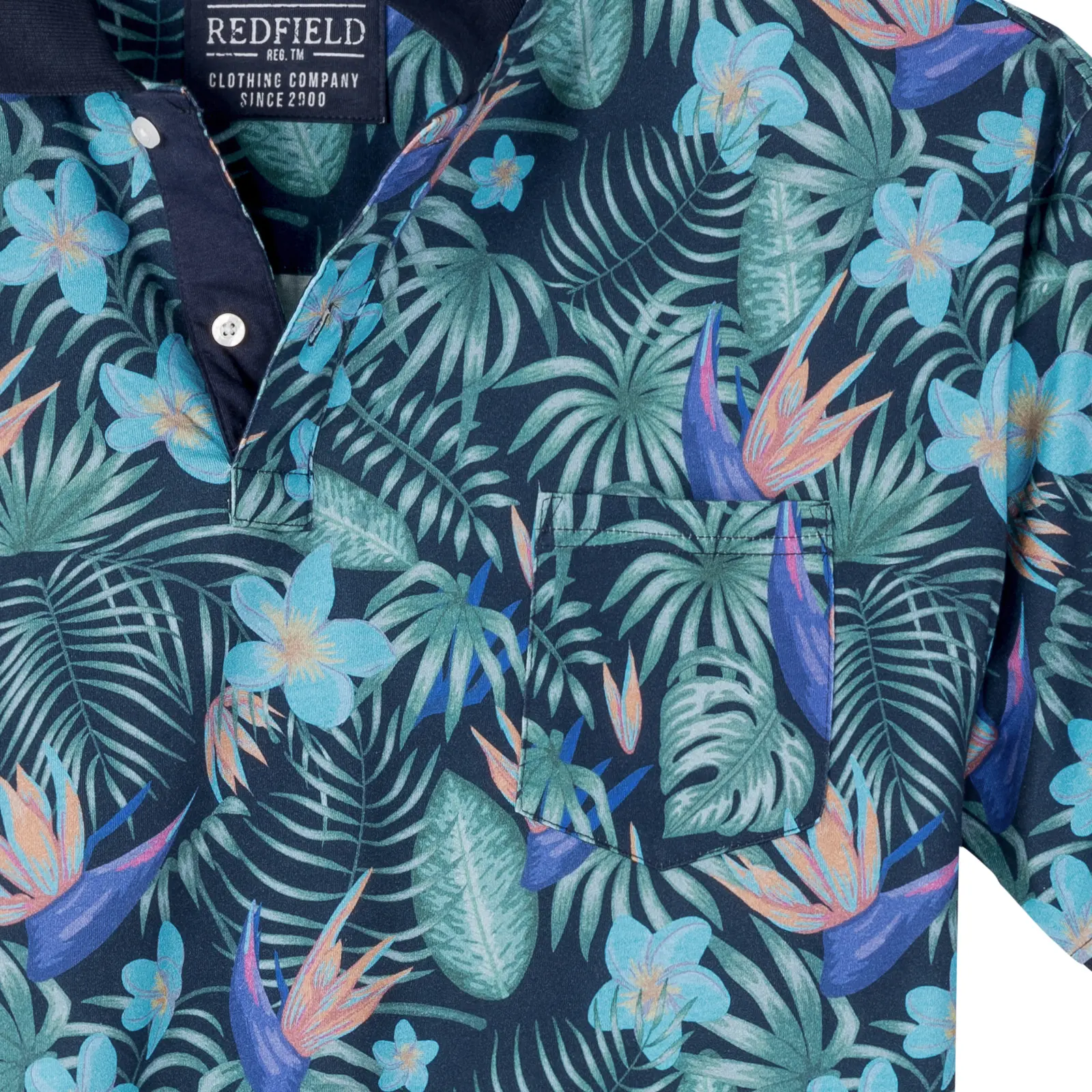 Redfield poloshirt donkerblauw flora design. poloshirt korte mouw met borstzakje in 100% katoen.