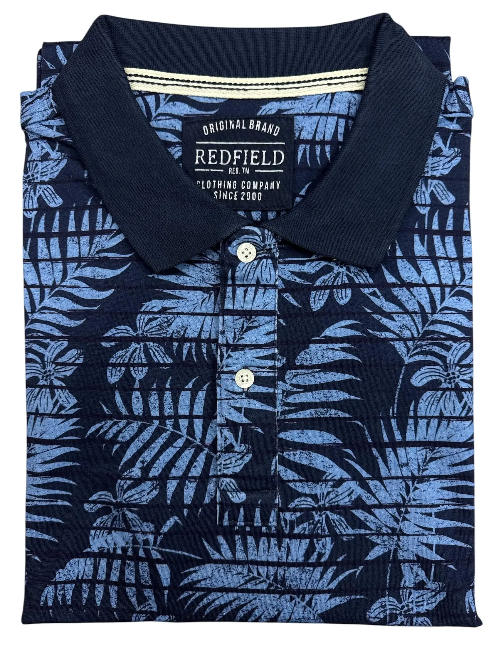 Redfield poloshirt korte mouw in donkerblauw met een blad streep design. Poloshirt korte mouw polokraag met 2 knoopjes. De kwaliteit is 100% katoen jersey.