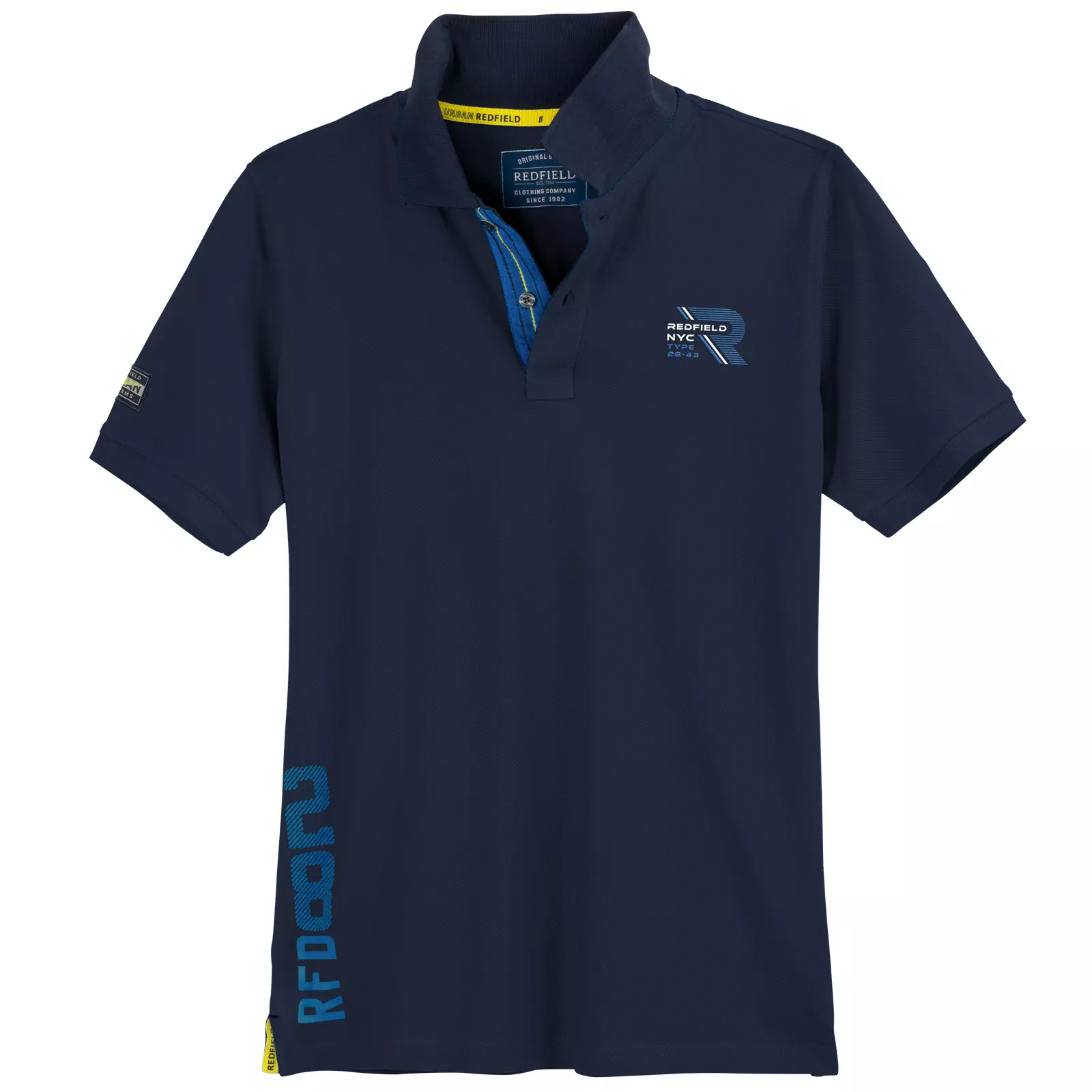 Redfield poloshirt korte mouw donkerblauw met kleur accenten en applicaties. Poloshirt korte mouw polokraag met 2 knoopjes. De kwaliteit is 100% katoen pique.