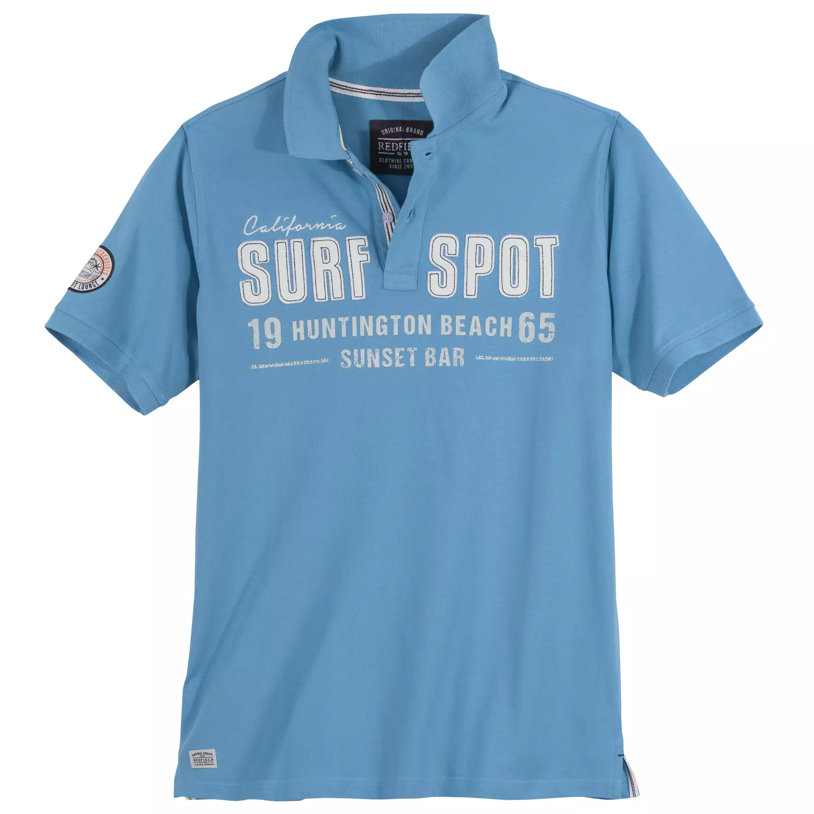 Redfield poloshirt korte mouw en polokraag knoop in lichtblauw. Poloshirt met op de borst een sportieve applicatie. De kwaliteit is 100%katoen.