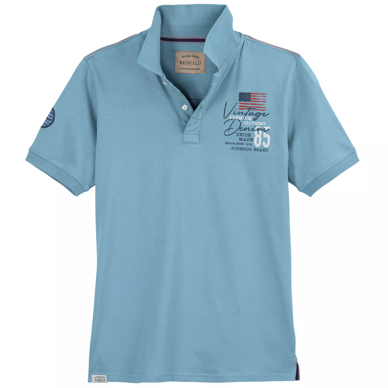 Redfield poloshirt korte mouw lichtblauw Vintage Denim 85. Poloshirt korte mouw polokraag met 2 knoopjes. De kwaliteit is 100% katoen t-shirt stof.