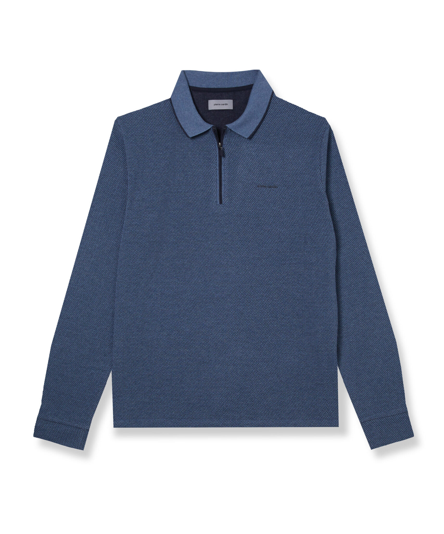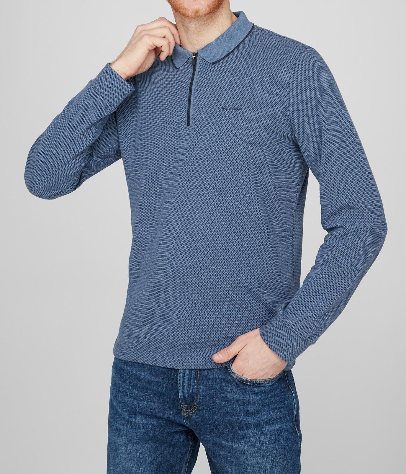 Pierre Cardin poloshirt lange mouw blauw gemêleerd met polokraag rits. De kwaliteit van deze polo is 100%katoen machine wasbaar 30graden.