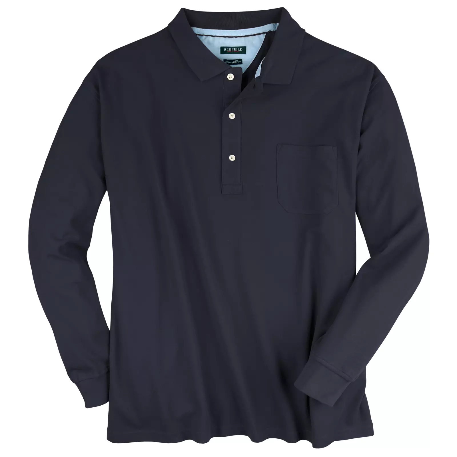 Redfield grote maat poloshirt lange mouw uni donkerblauw. Poloshirt met op de linkerkant van de borst een borstzakje. De kwaliteit van deze polo is 100% katoen pique.