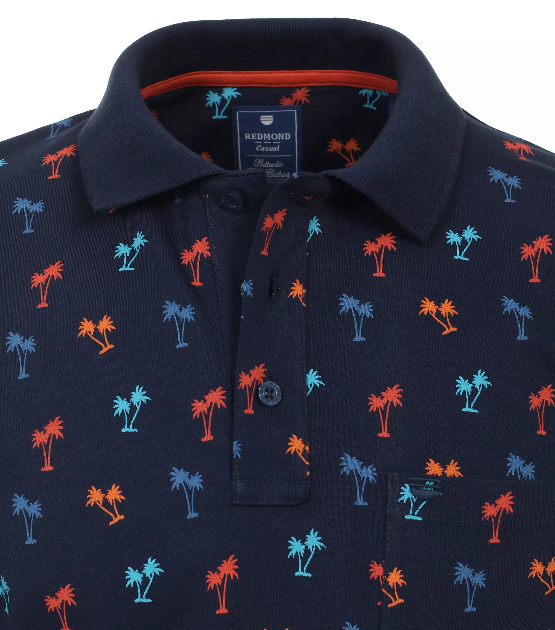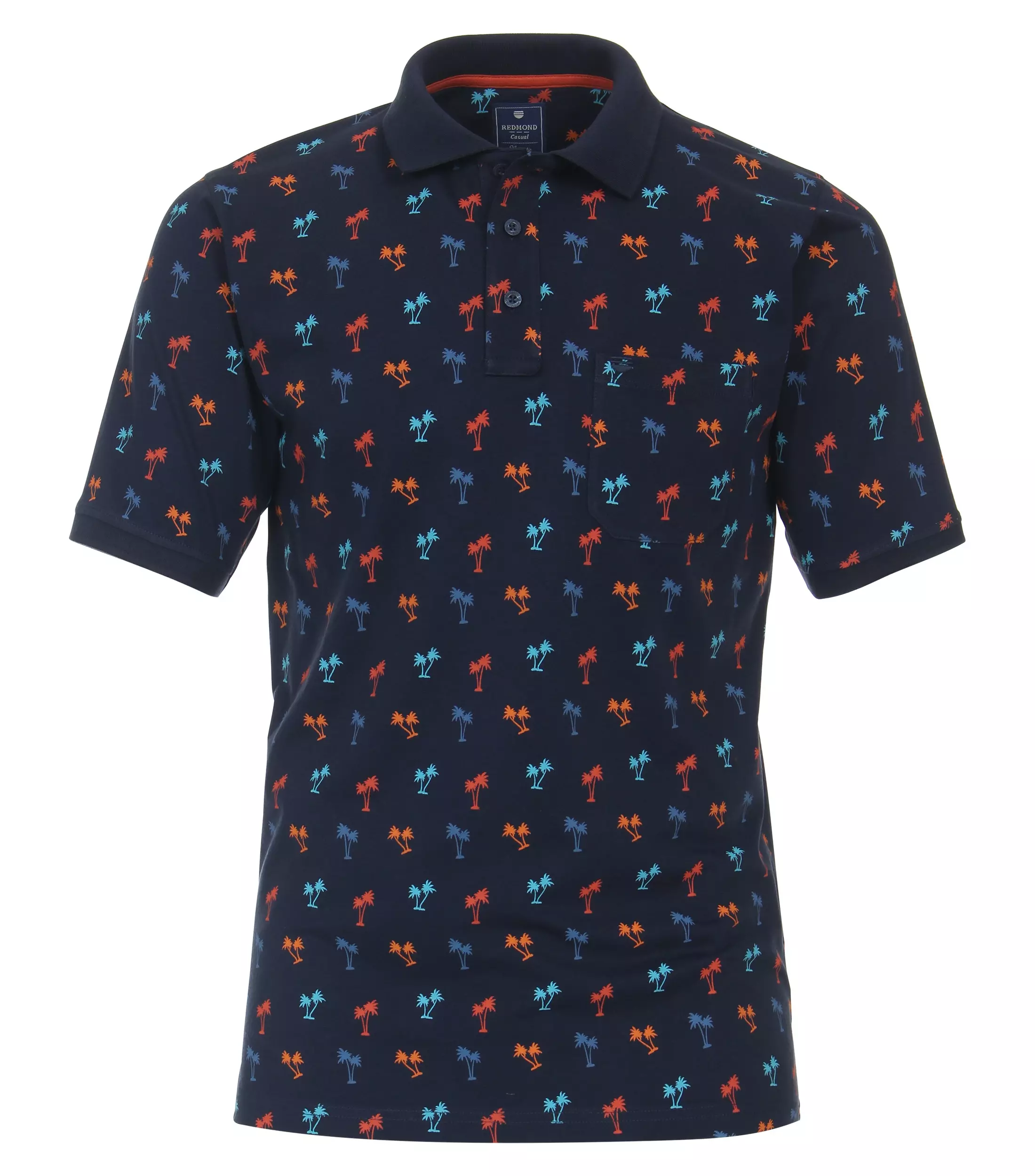 Redmond poloshirt met gekleurde palm boompjes. Redmond poloshirt korte mouw met borstzakje in 100% katoen.