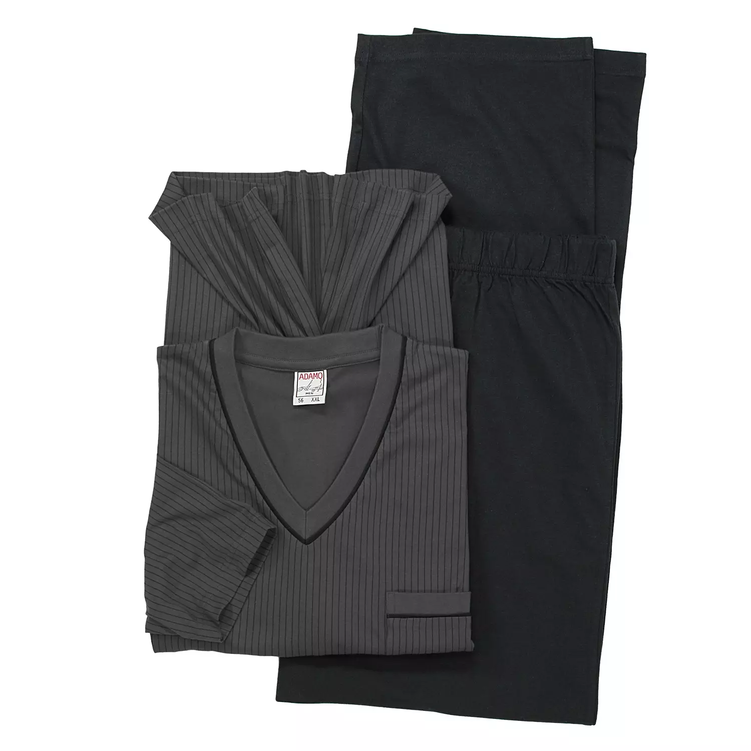 Pyjama van Adamo: 100% Katoen, Bovenstuk met V-hals in Donkergrijs Gestreept, Uni Donkergrijze Broek
