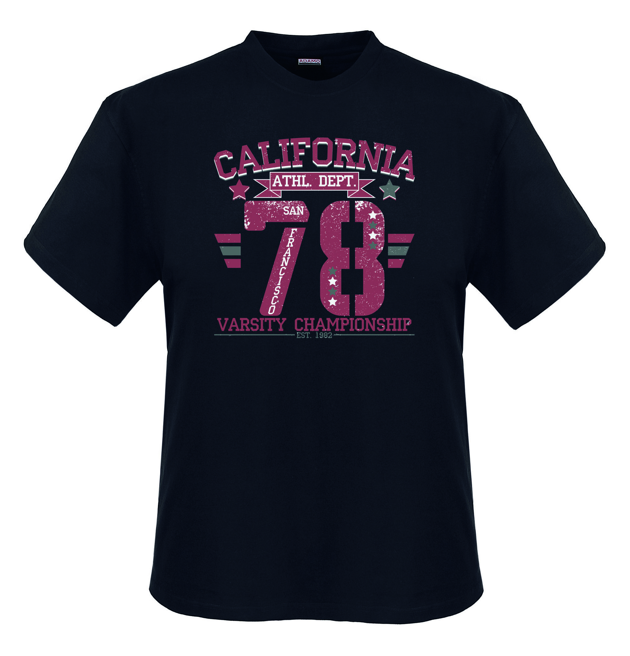 Adamo grote maat t-shirt met korte mouw en ronde hals in zwart met California print. De kwaliteit is 100%katoen.