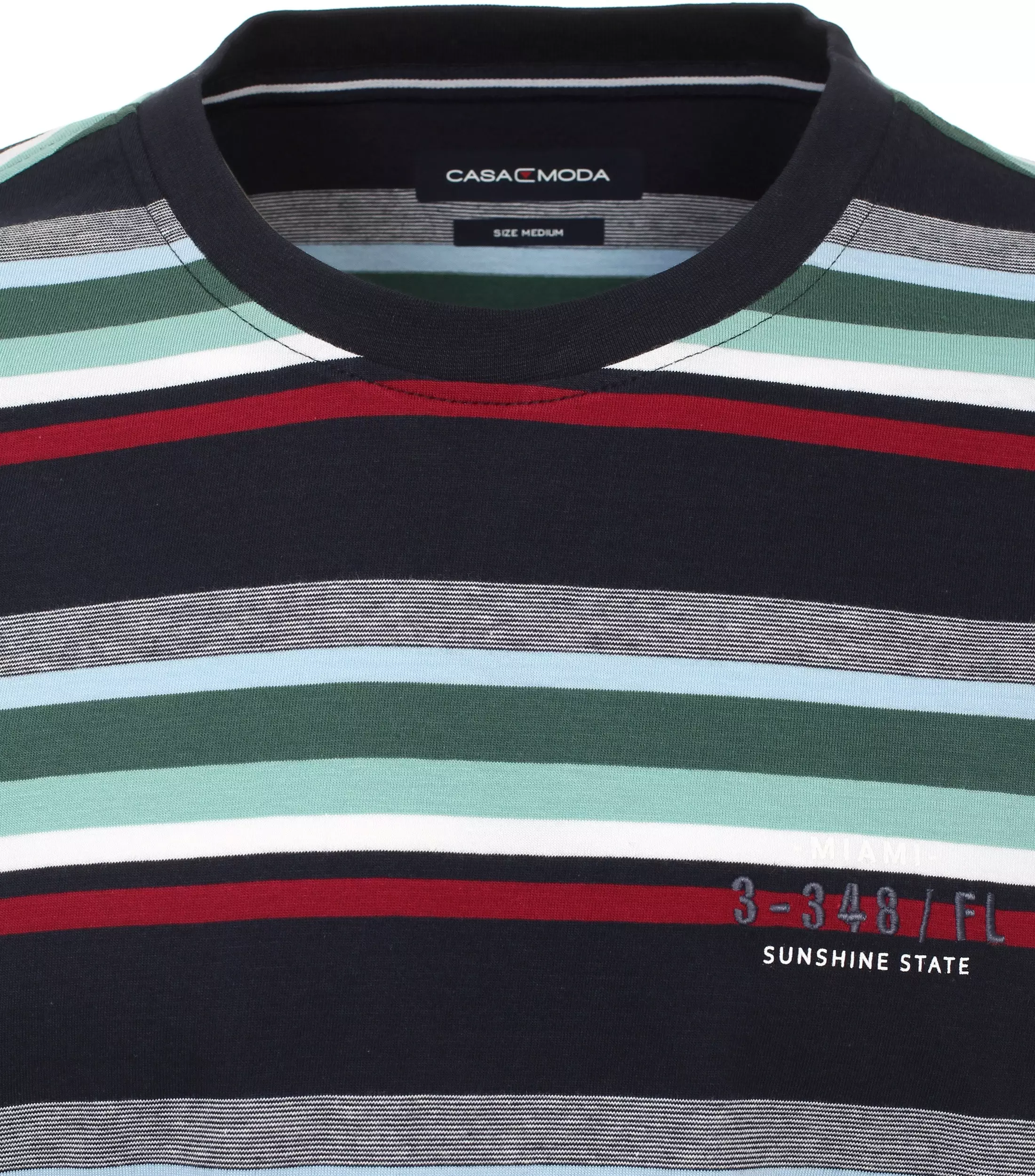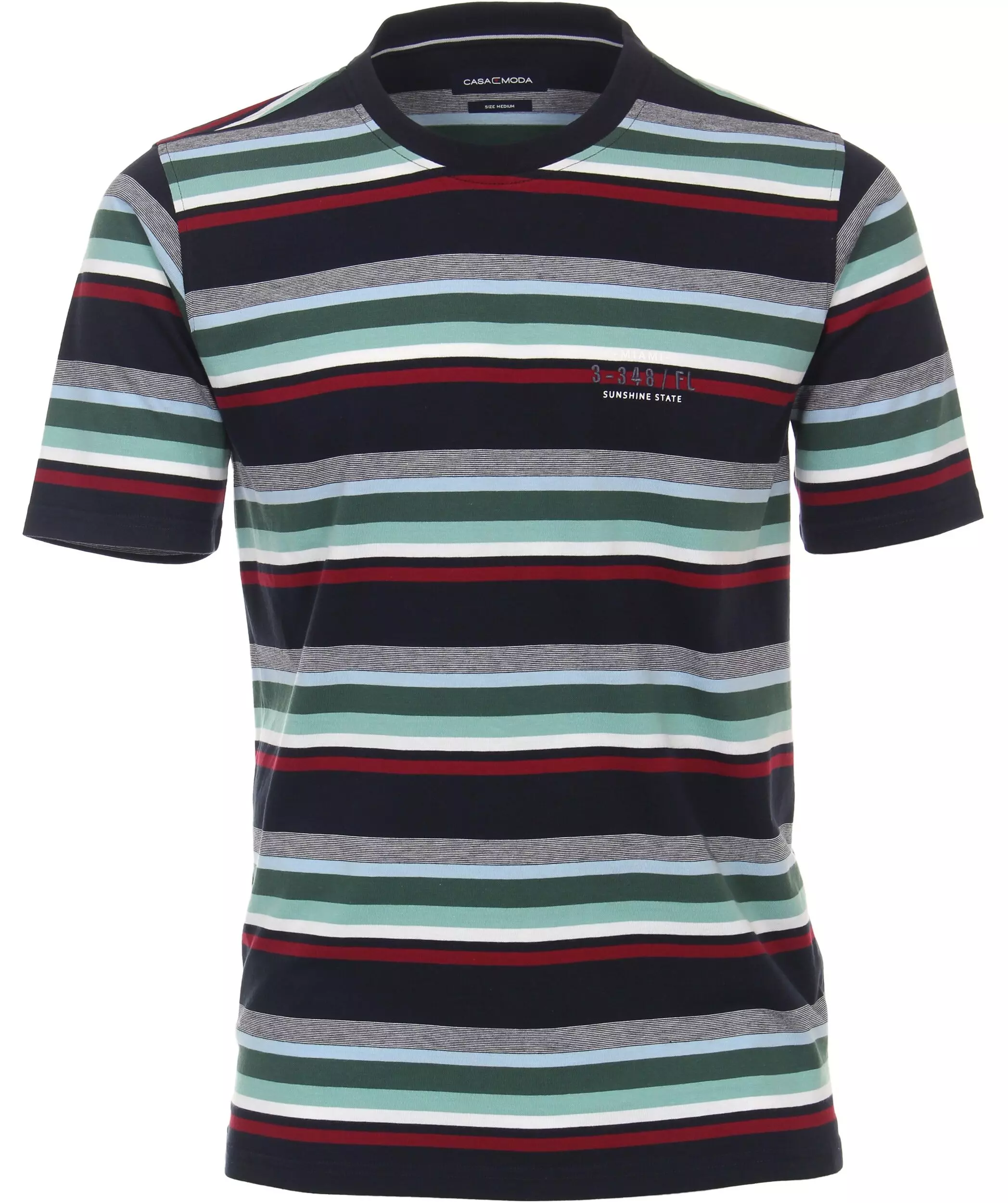 Casa Moda t-shirt met korte mouw en ronde hals in een lichtblauw, donkerblauw, bordeauxrood en groen design.