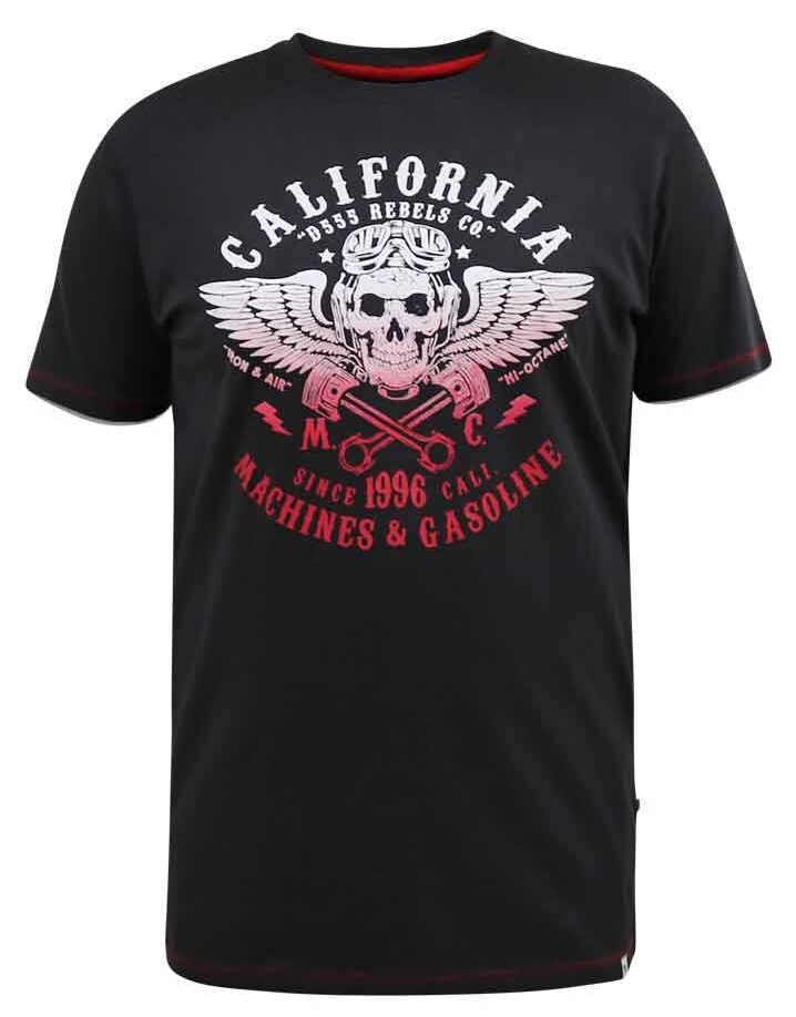 ### D555 T-shirt Korte Mouw en Ronde Hals in Zwart met California Rebels Print