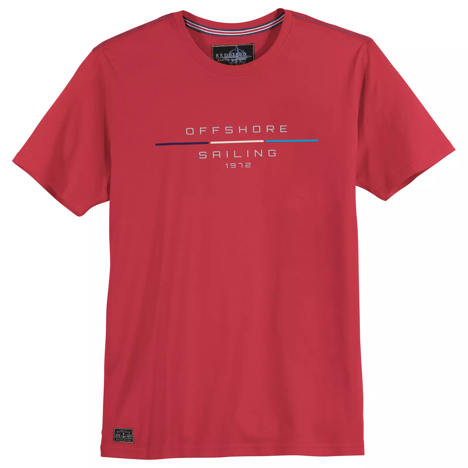 Redfield grote maat t-shirt korte mouw rood Off Shore. T-shirt korte mouw en ronde hals met opdruk. De kwaliteit is 100% katoen.