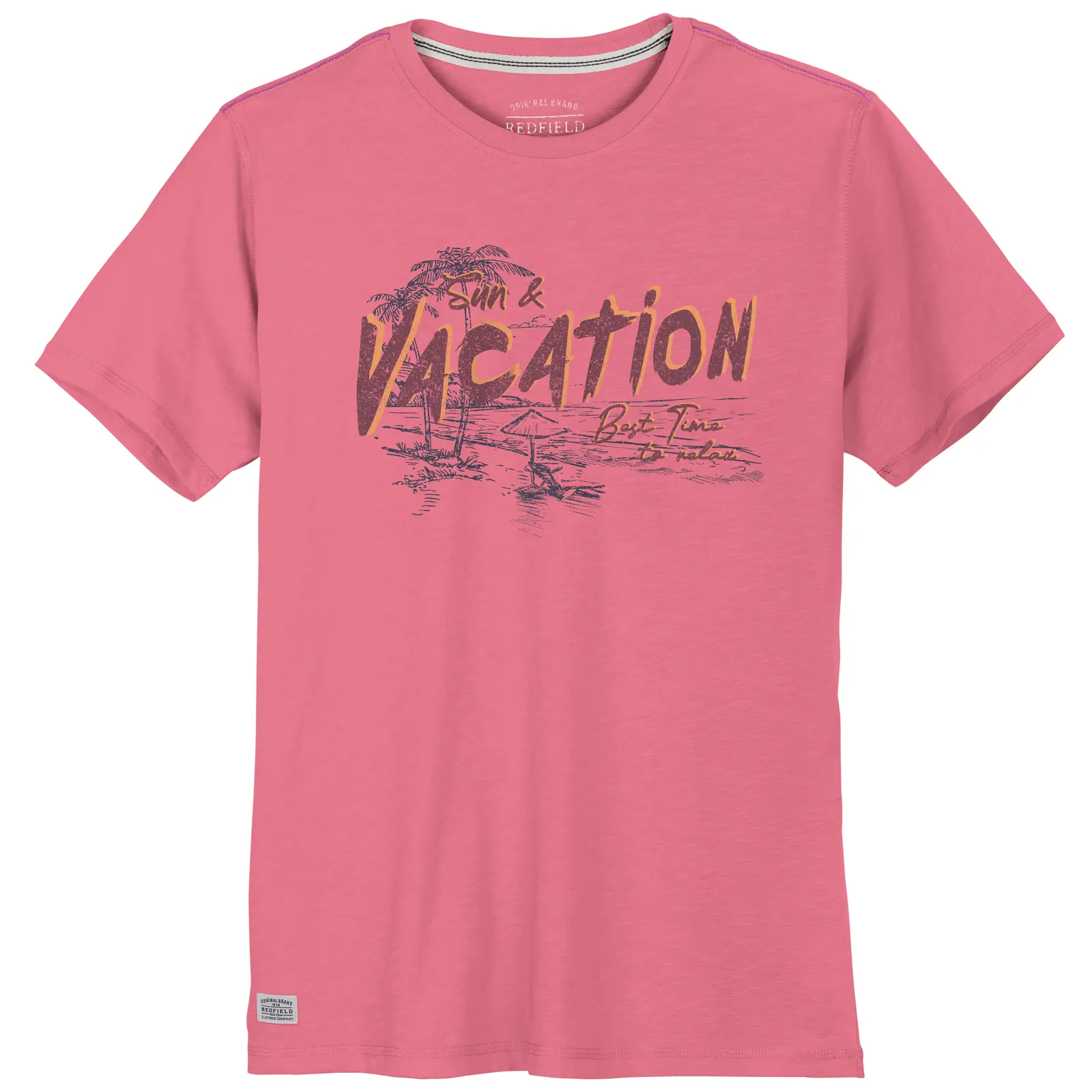 Redfield t-shirt korte mouw en ronde hals in rouge Sun & Vacation design. De kwaliteit is 100% katoen.