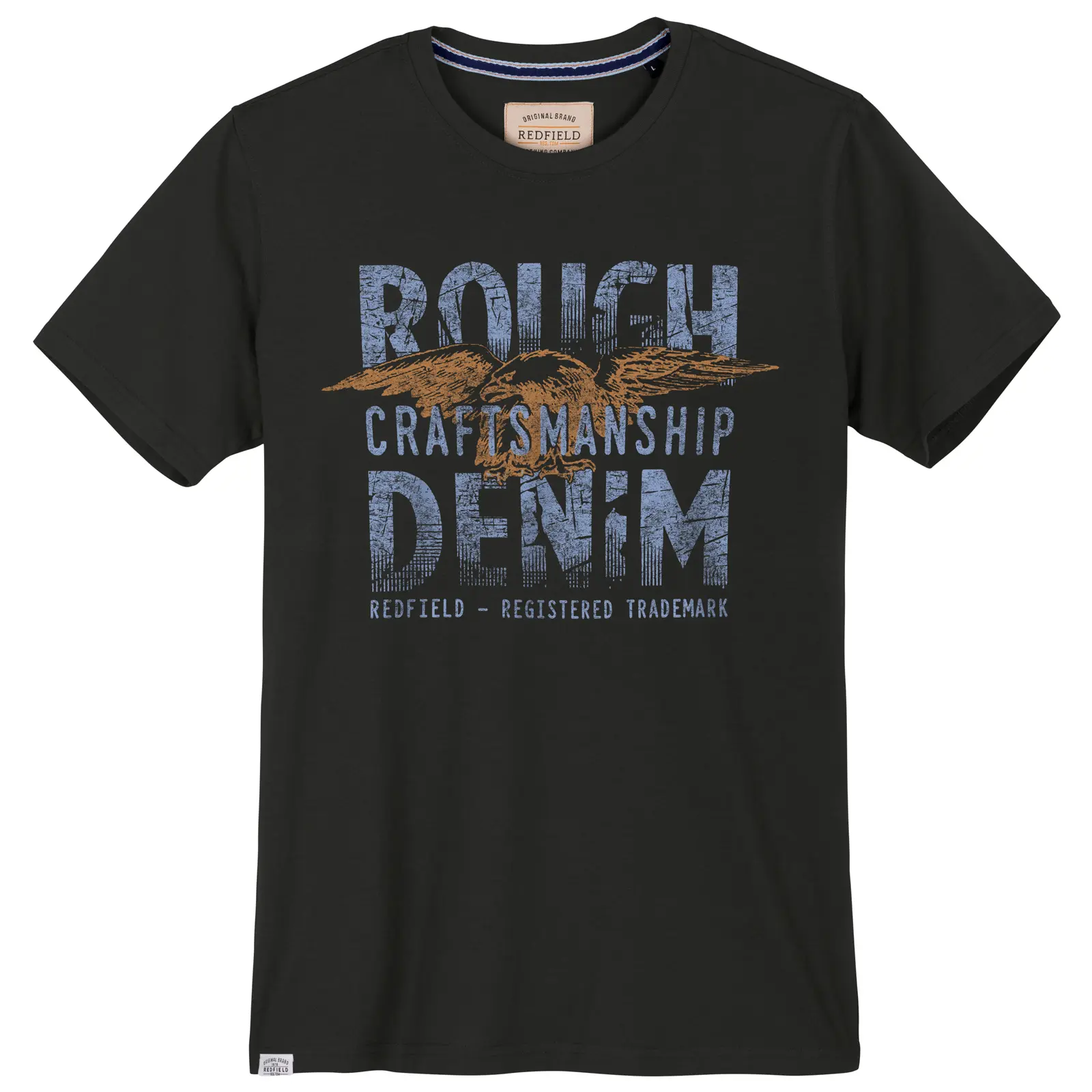 Redfield t-shirt korte mouw en ronde hals in zwart met Rough Denim design. De kwaliteit is 100% katoen.