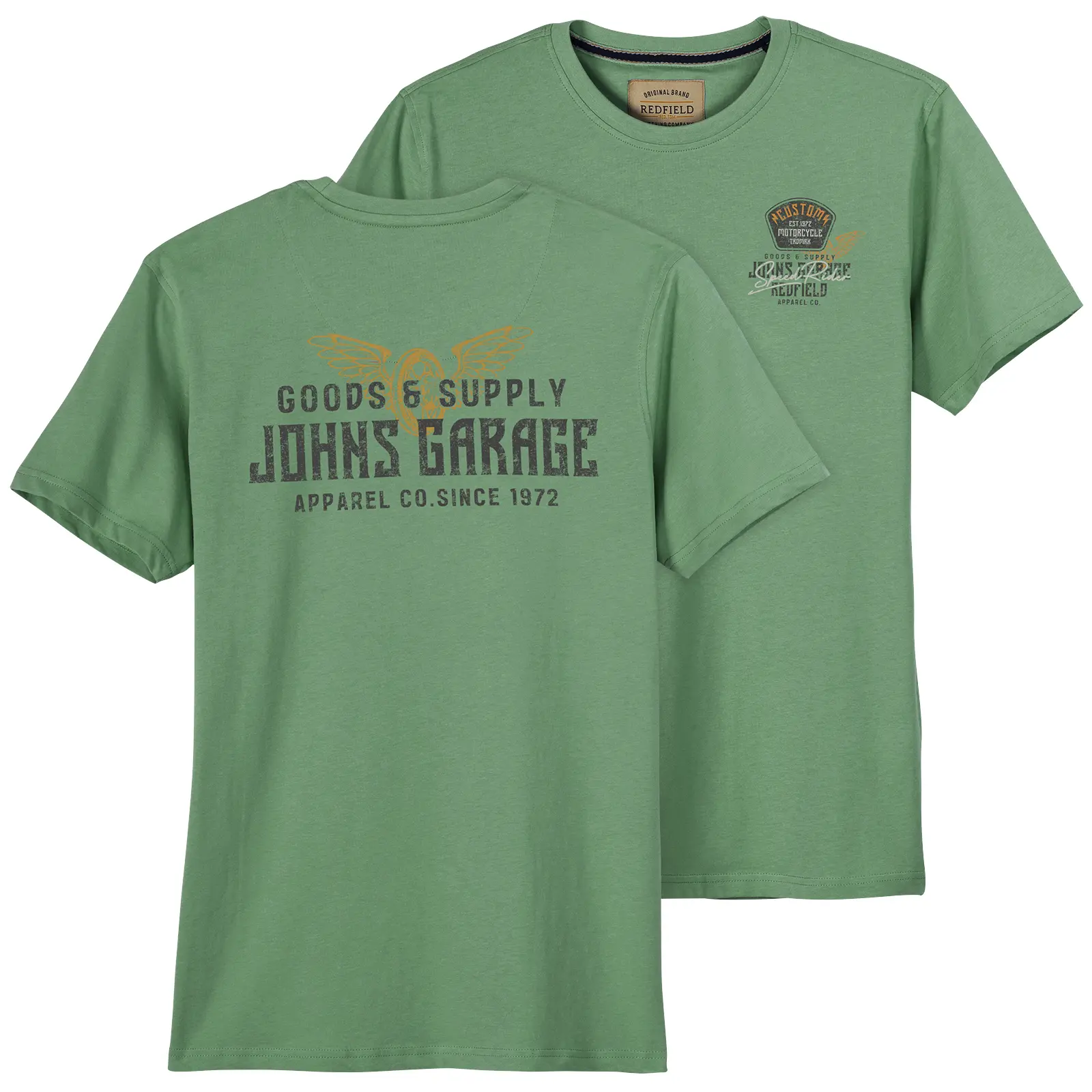 Redfield t-shirt groen Johns Garage. T-shirt korte mouw en ronde hals in 100% katoen.