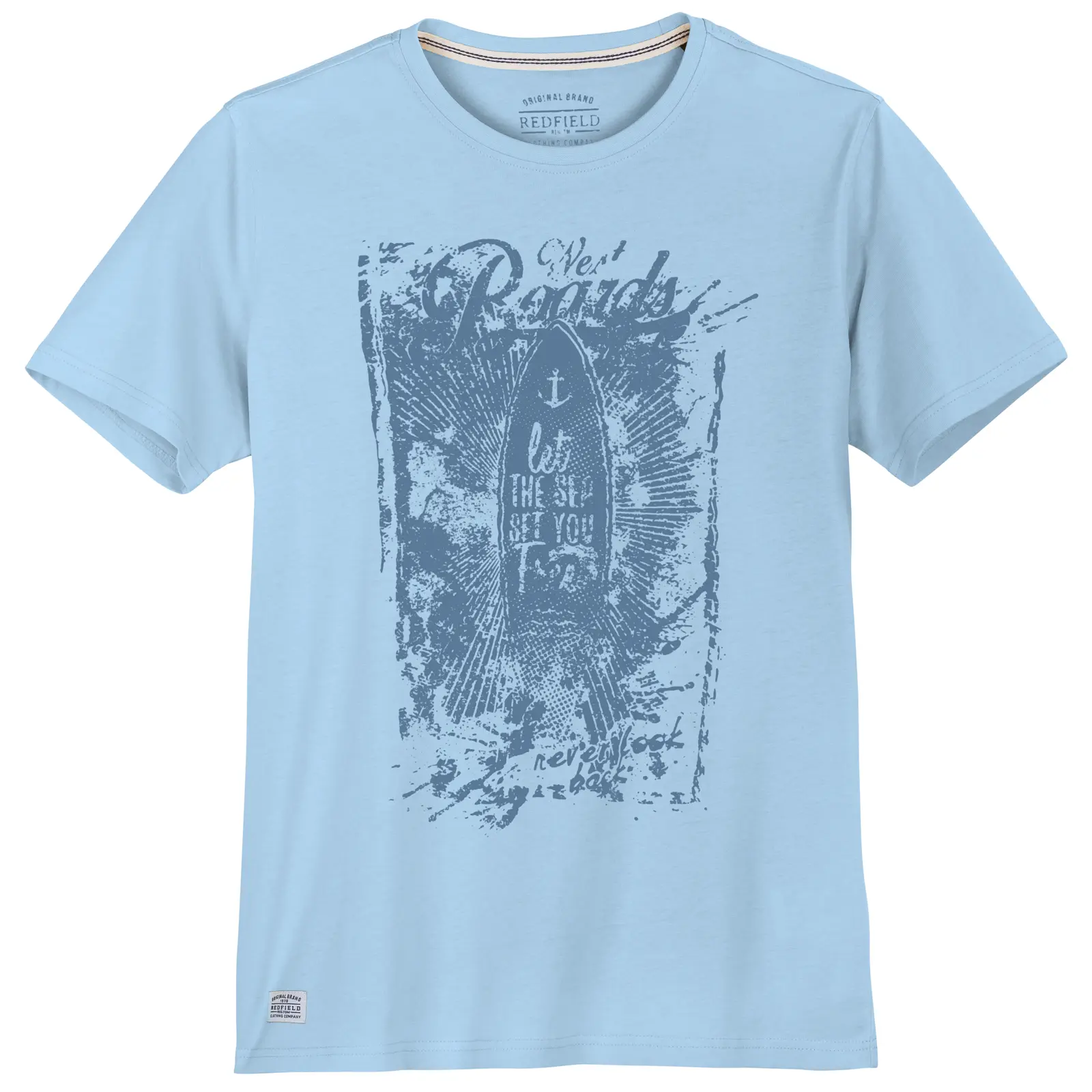 Redfield t-shirt korte mouw en ronde hals in blauw met een surf design. De kwaliteit is 100% katoen.