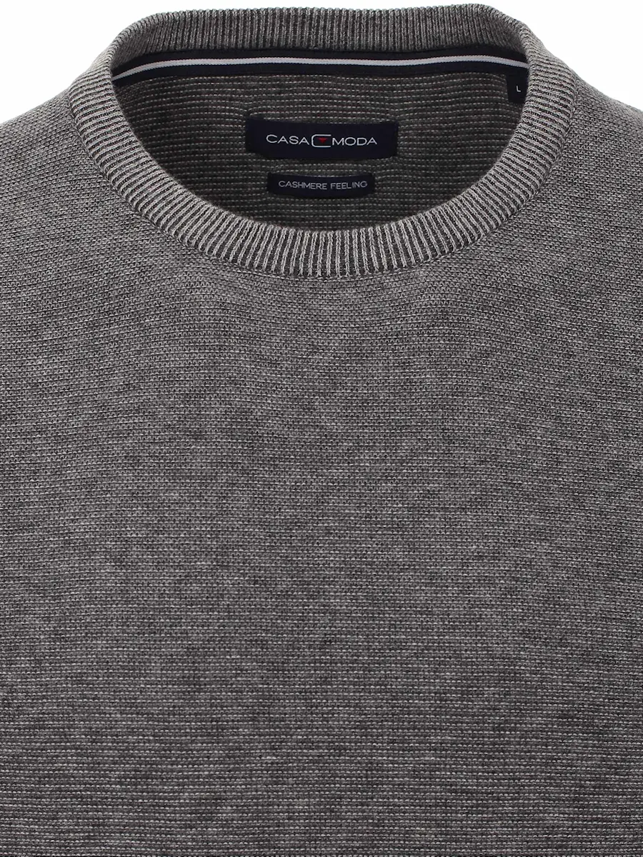 Casa Moda grote maat trui grijs gemêleerd. De kwaliteit van deze trui is 95% katoen en 5% cashmere machine wasbaar 30graden.